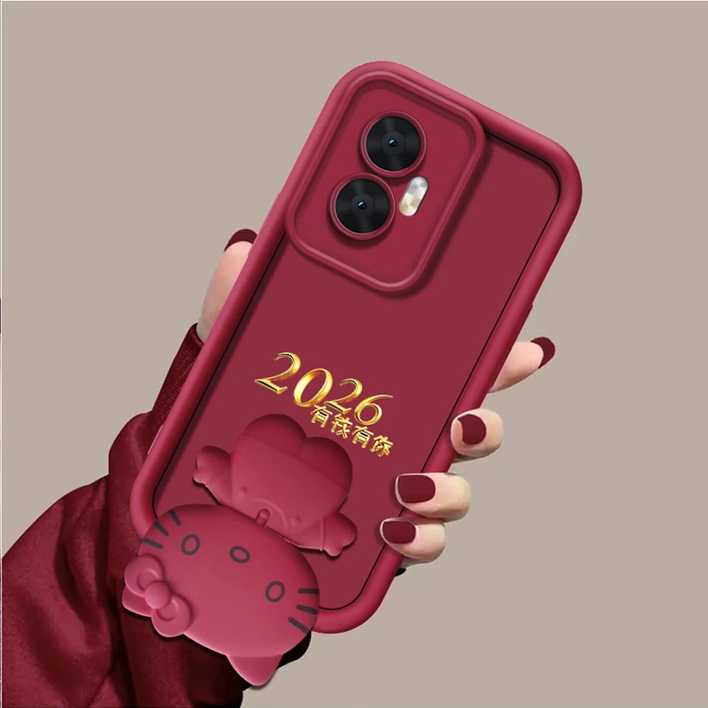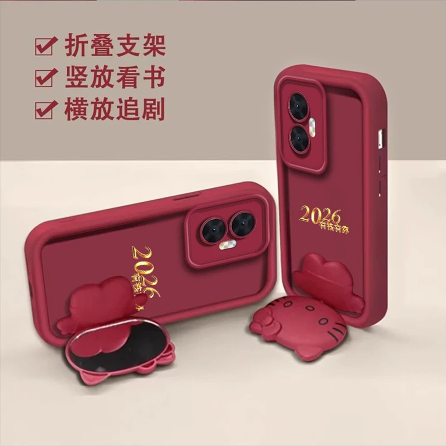 2026有钱有你适用荣耀300手机壳新款简约高颜值荣耀400/200外壳硅胶软壳防摔镜子支架带手绳酒红色保护套女款