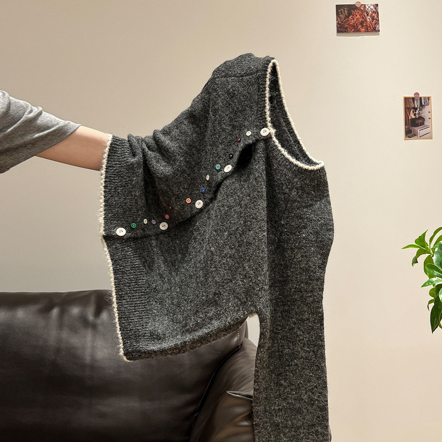 灰色圆领慵懒秋冬加厚针织打底内搭可外穿开衫长袖女毛衣外套上衣