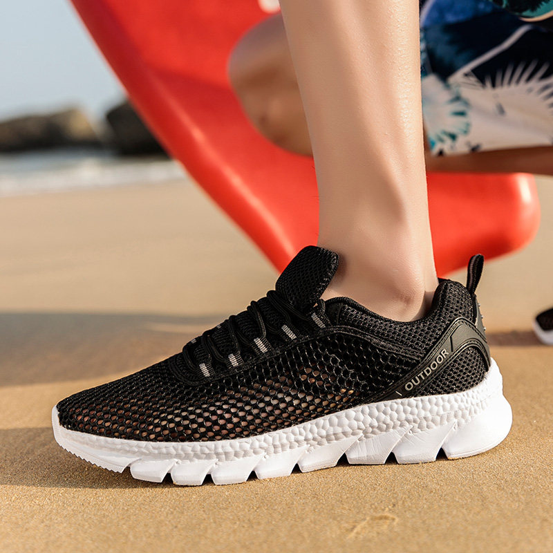 夏季薄款超软鞋底镂空透气防臭网鞋脚底通风轻便运动休闲大码男鞋