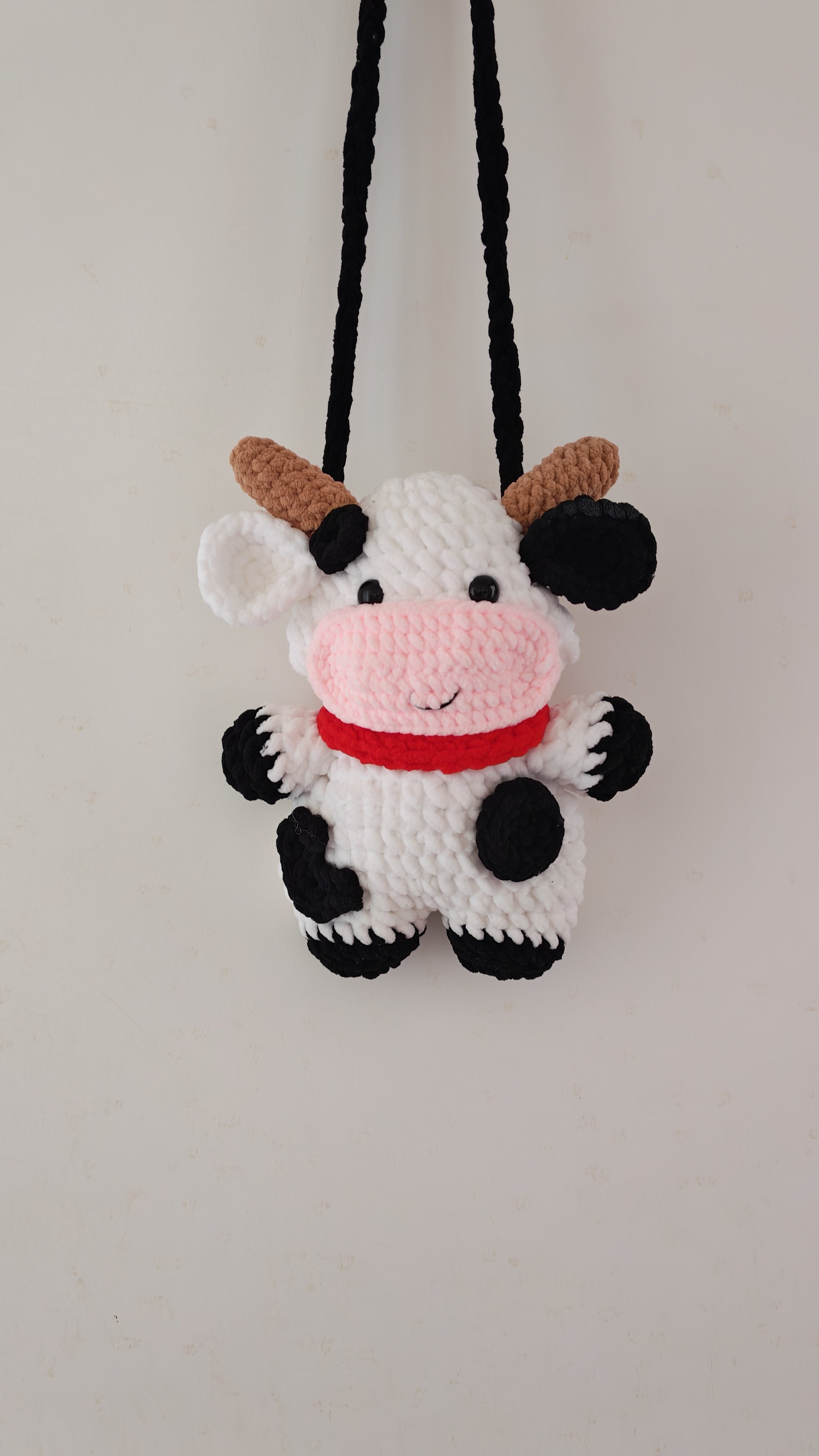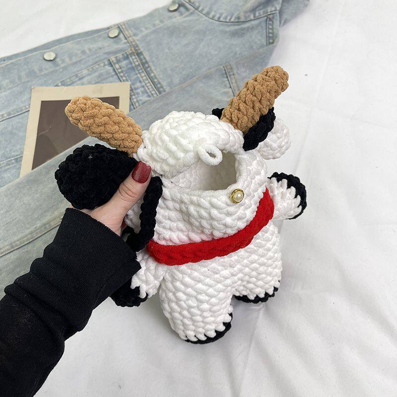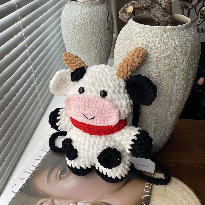创意手工钩织奶牛挂件成品斜挎包卡通玩偶包少女心毛绒编织手机包