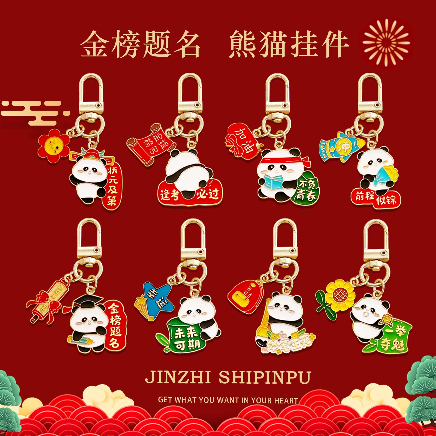 金榜题名熊猫钥匙扣逢考必过学生包包挂件中高考祝福励志小礼物