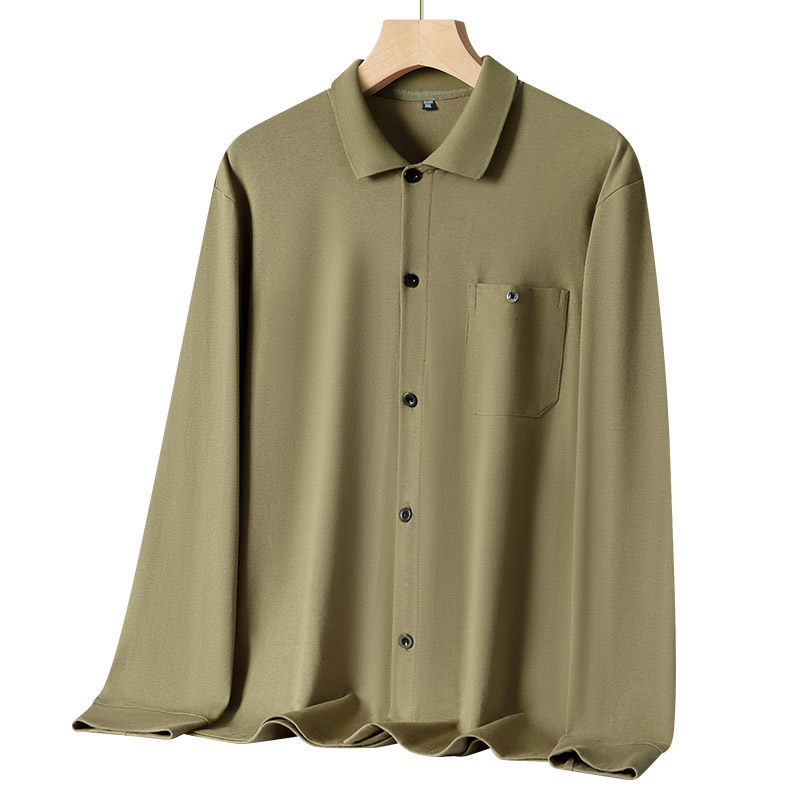 申本春秋中年爸爸装宽松大码开衫男款上衣正品纯棉男士长袖T恤