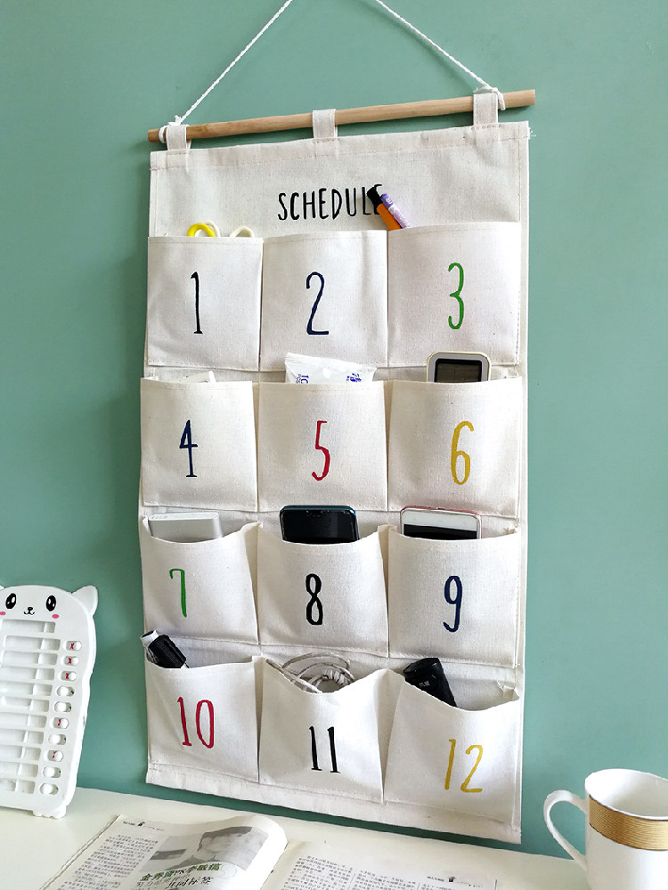 防水门后大号收纳挂袋墙挂式储物袋可爱棉麻布艺挂袋宿舍手机挂袋