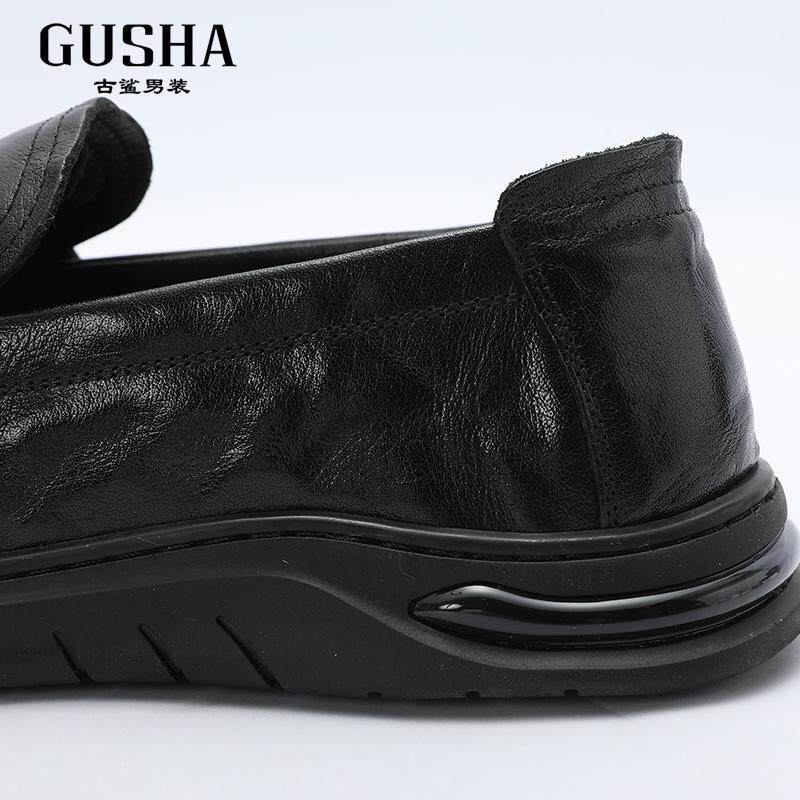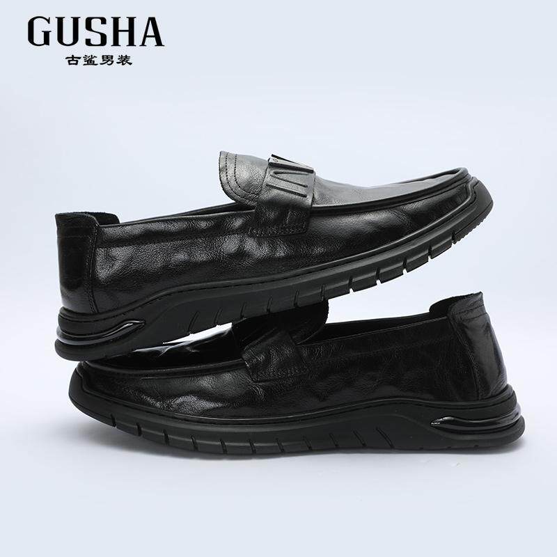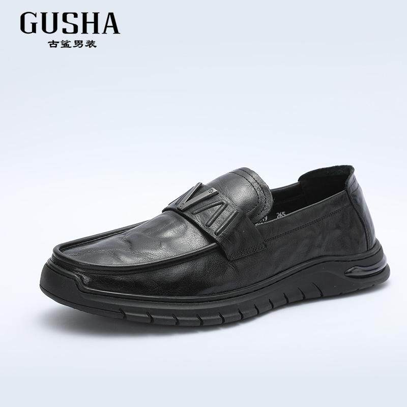 古鲨黑色牛皮乐福鞋男商务真皮软底懒人一脚蹬豆豆鞋2026春装新