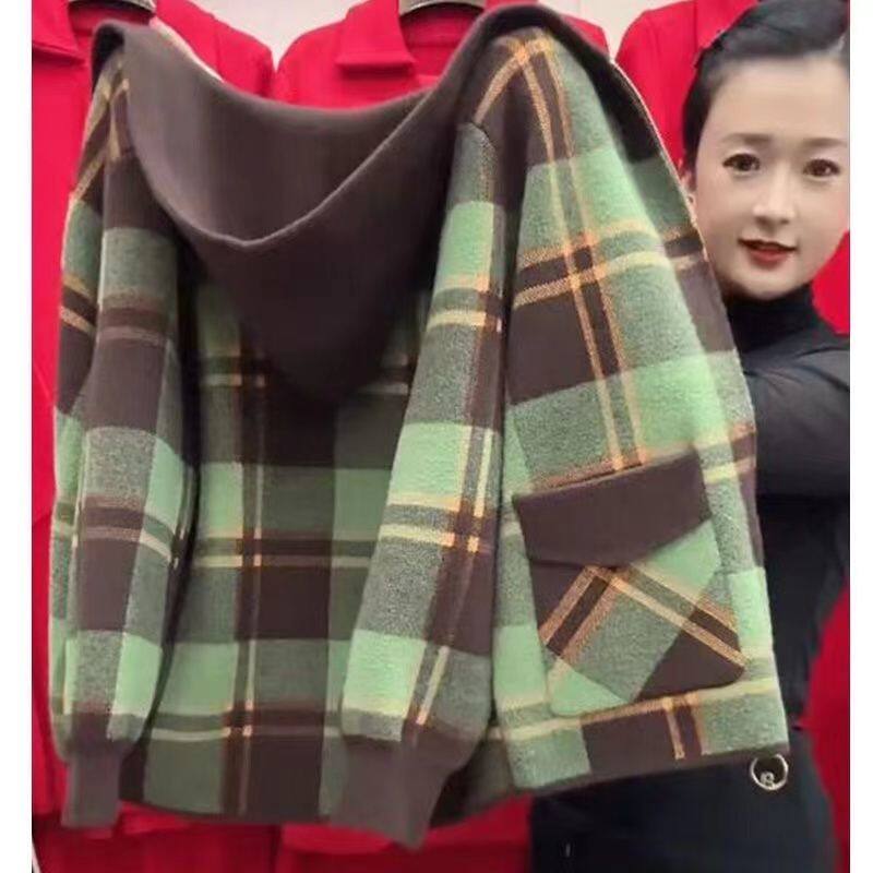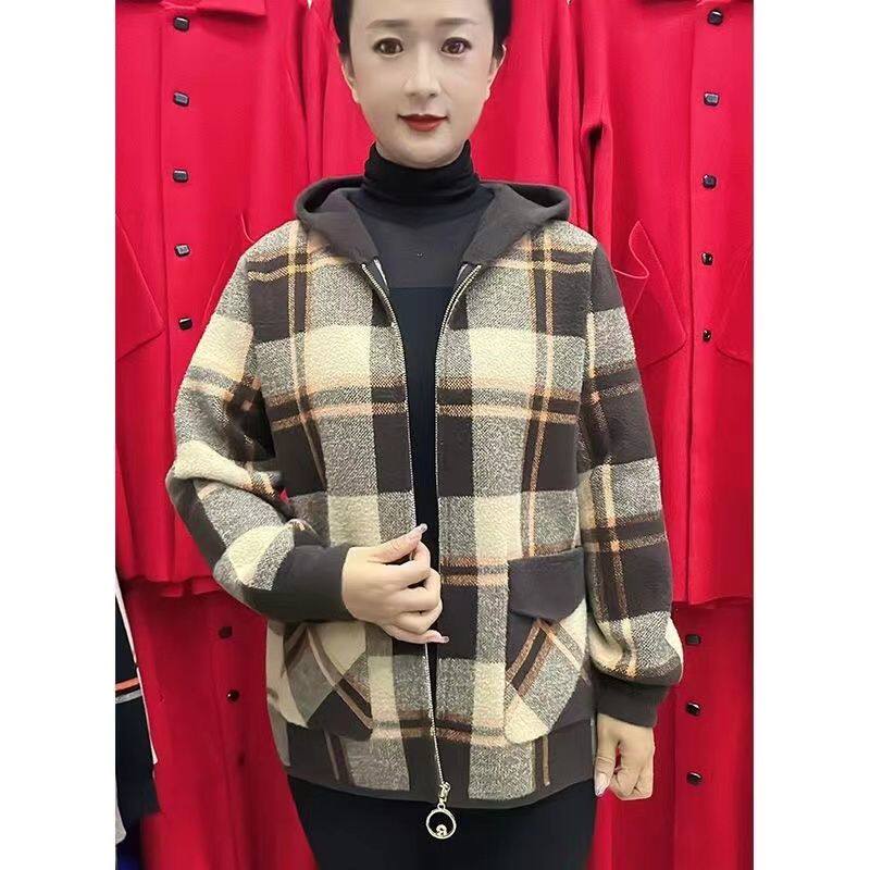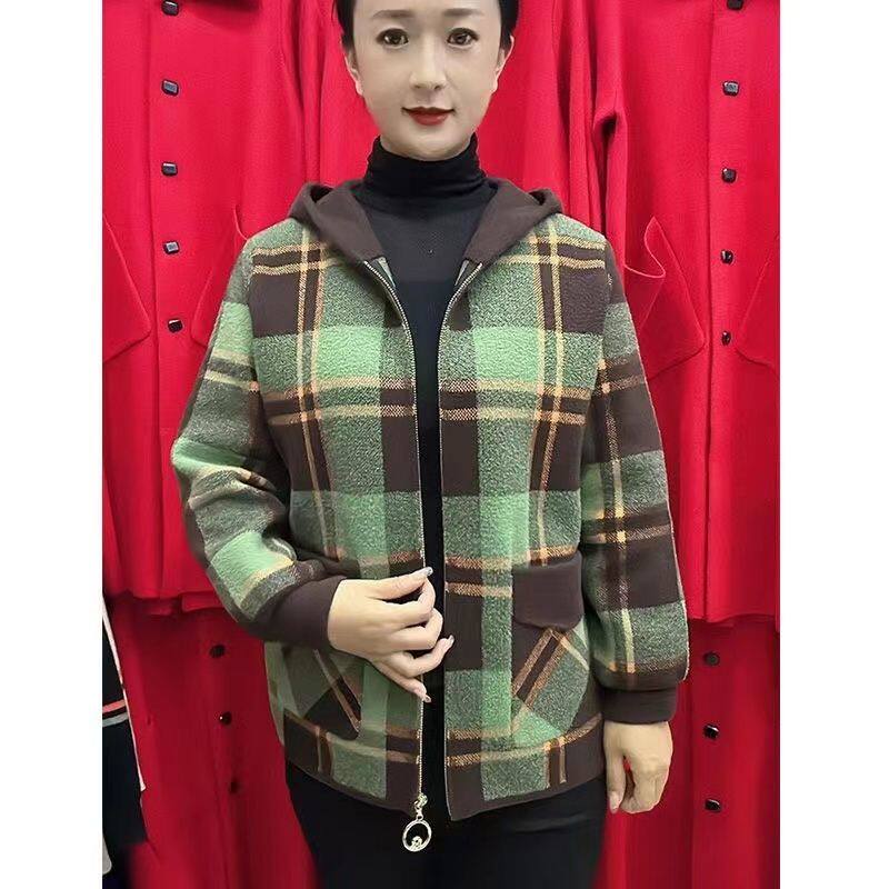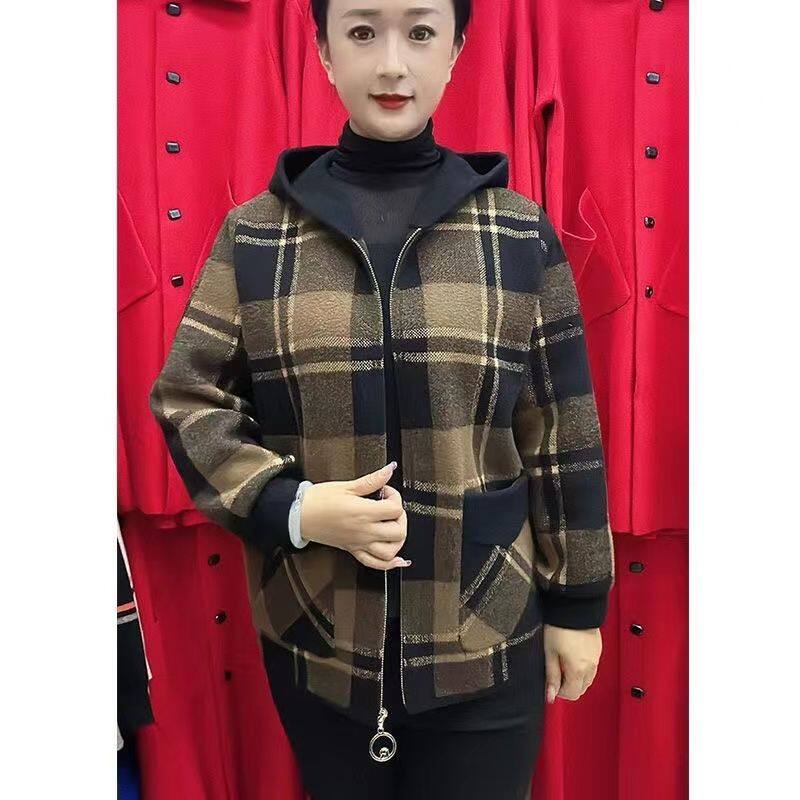 妈妈装双面呢短款外套女秋冬季新款宽松时尚百搭毛呢外套上衣女