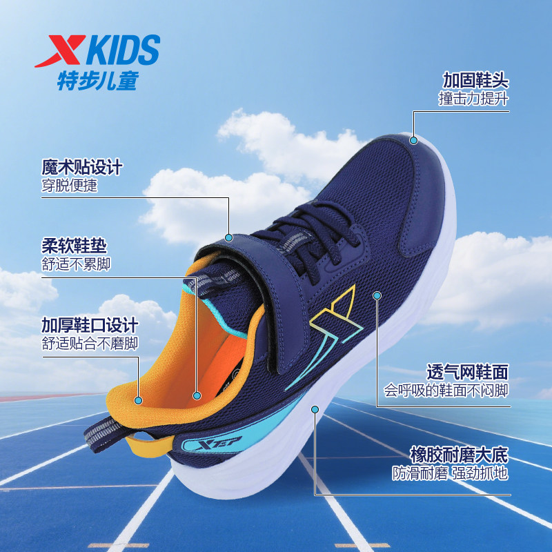 特步儿童运动鞋男童透气轻便防滑魔术贴舒适轻盈缓震跑步鞋