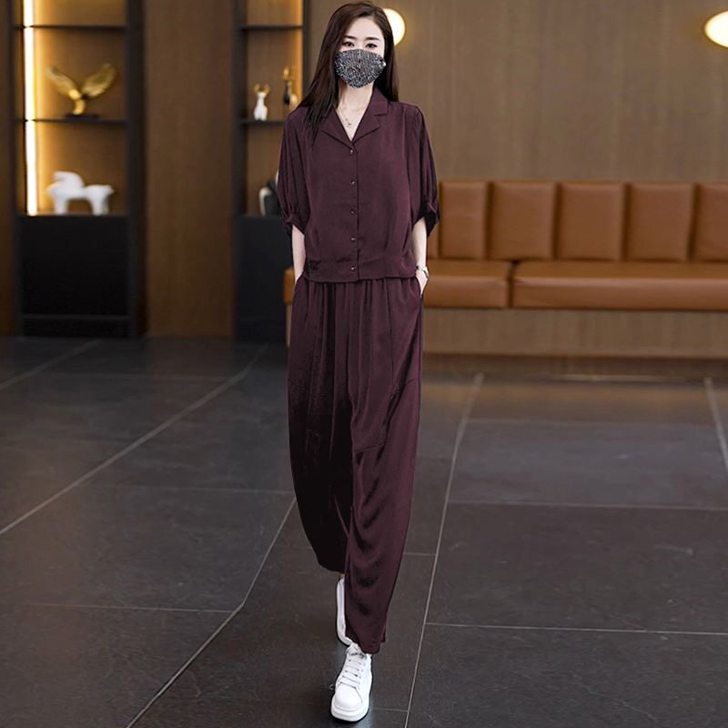 微胖轻奢高级感套装夏装女装2026新款大码胖mm显瘦哈伦裤两件套潮