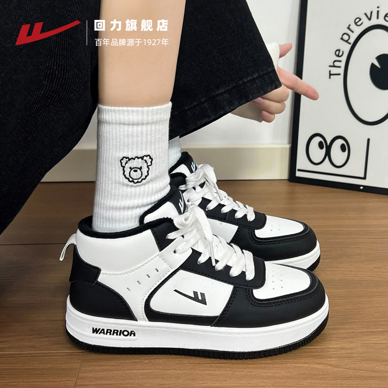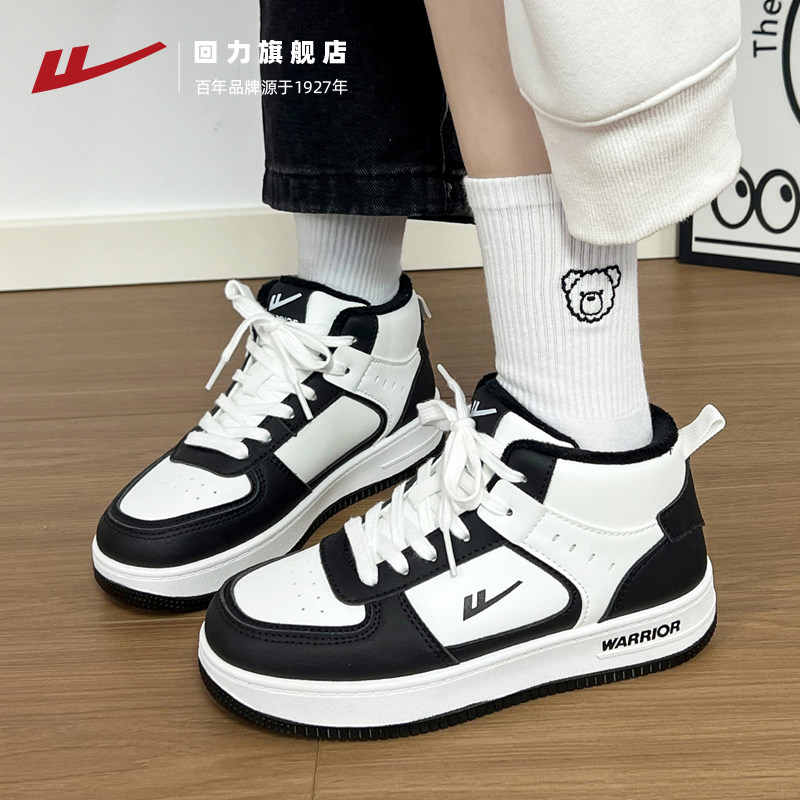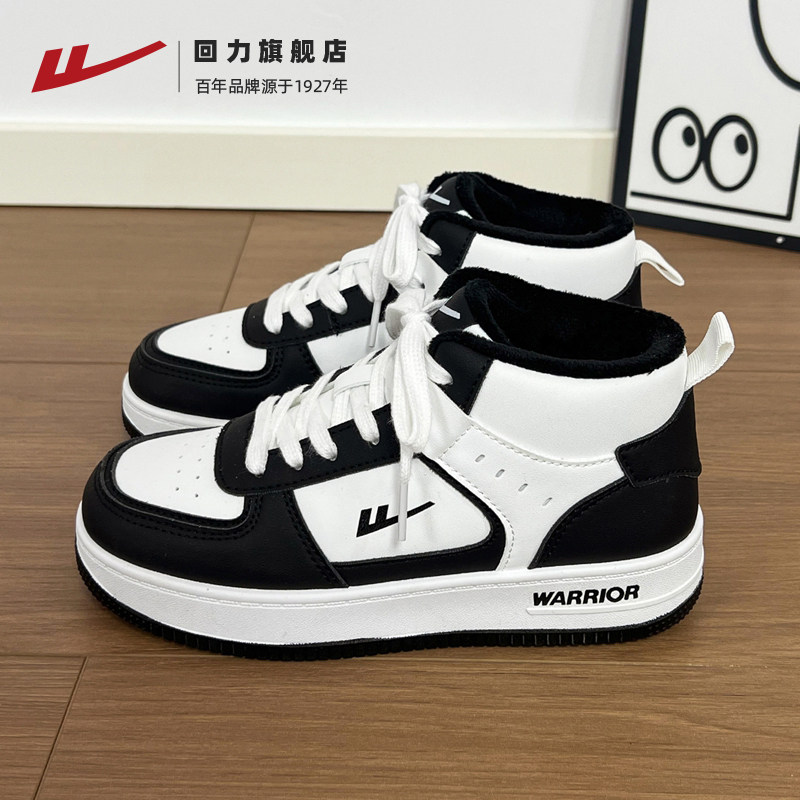 回力黑白熊猫女鞋2025秋冬厚底高帮加绒女鞋潮流情侣运动休闲板鞋