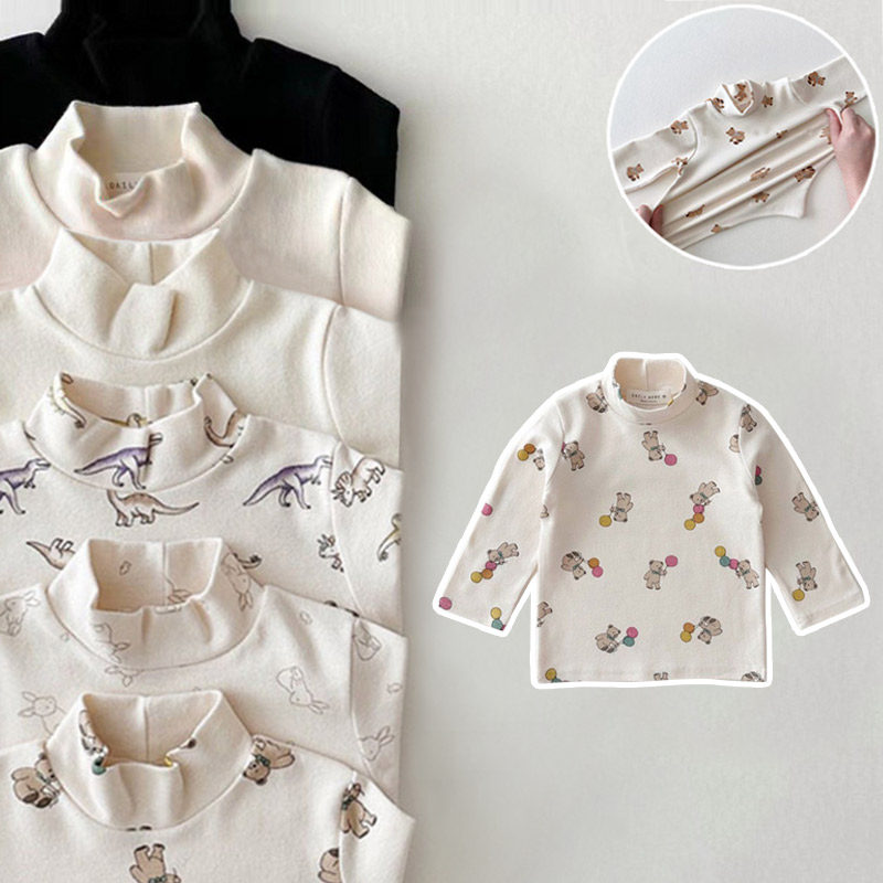 儿童长袖T恤春秋婴儿纯棉上衣半高领打底衫宝宝加厚保暖衣服秋冬