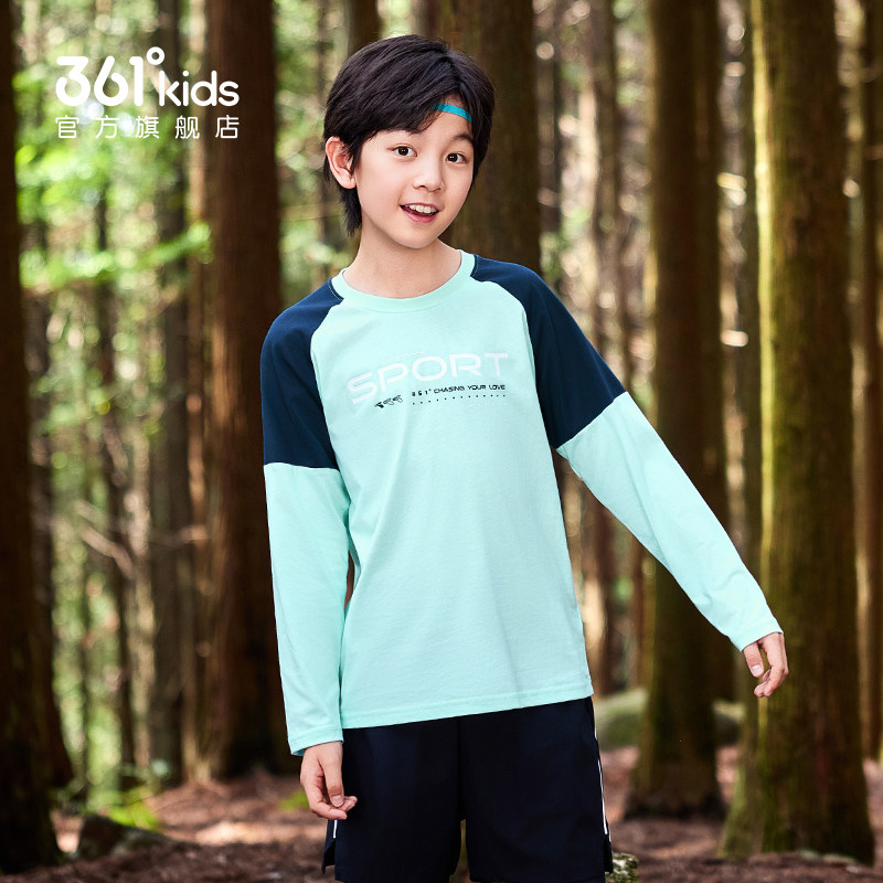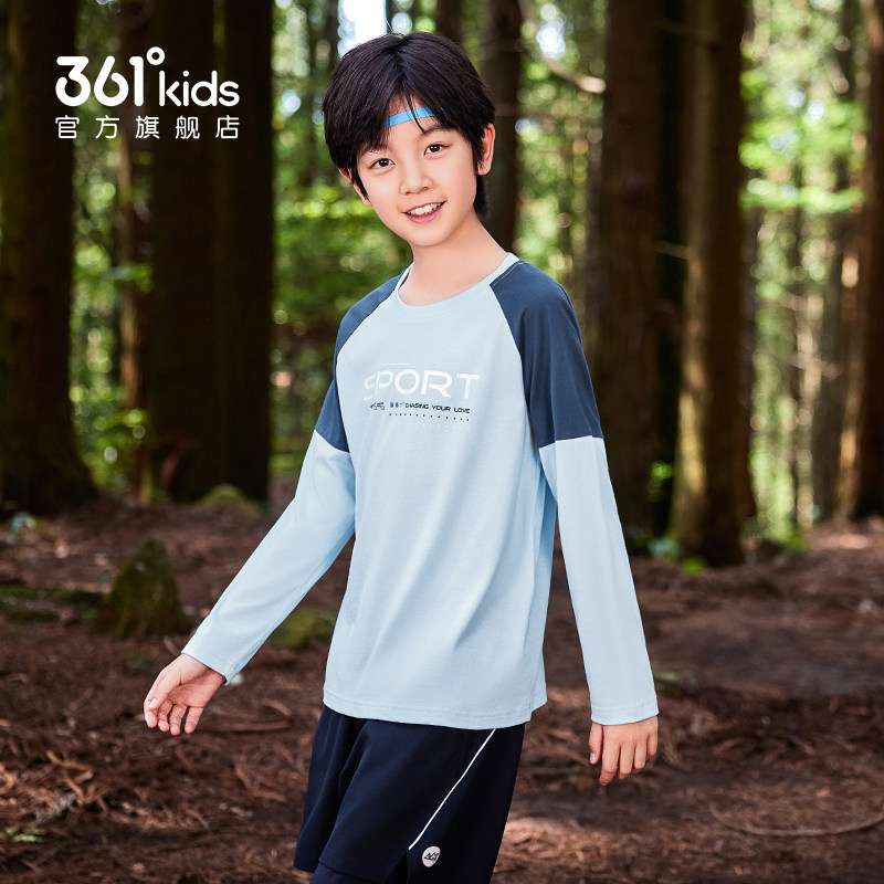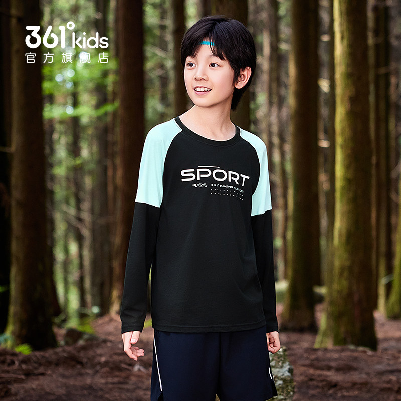 361度童装男童长袖T恤2026春季新款纯棉运动儿童卫衣春装男孩衣服