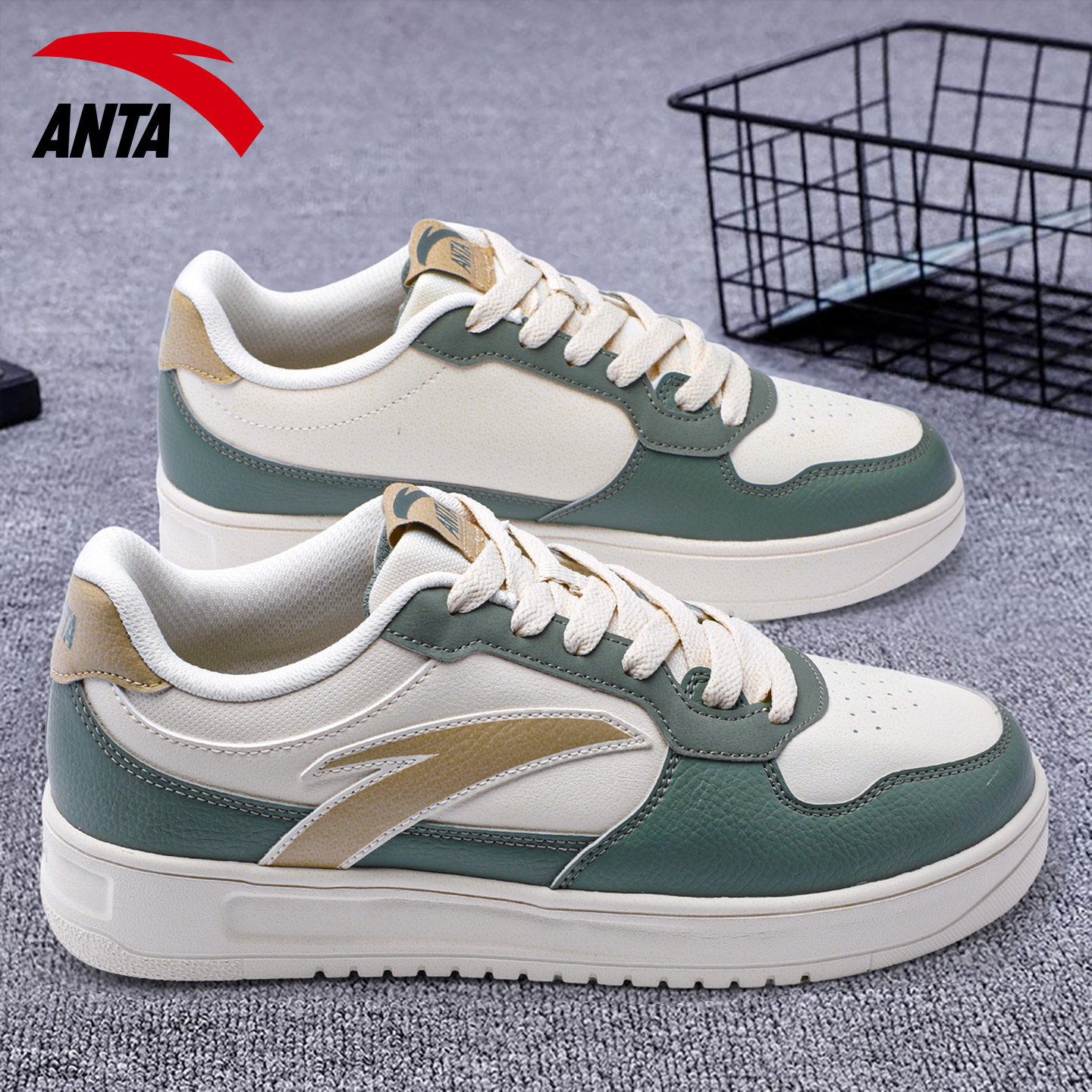 安踏男鞋板鞋低帮小白鞋春季2026新款透气厚底轻便撞色休闲运动鞋