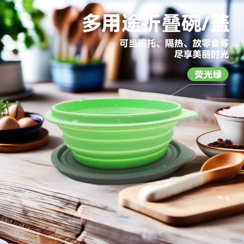 311线报网描述:食品级硅胶折叠碗便携式伸缩碗宝宝户外饭盒