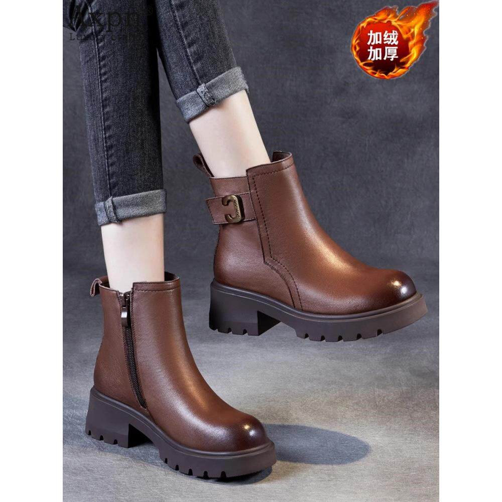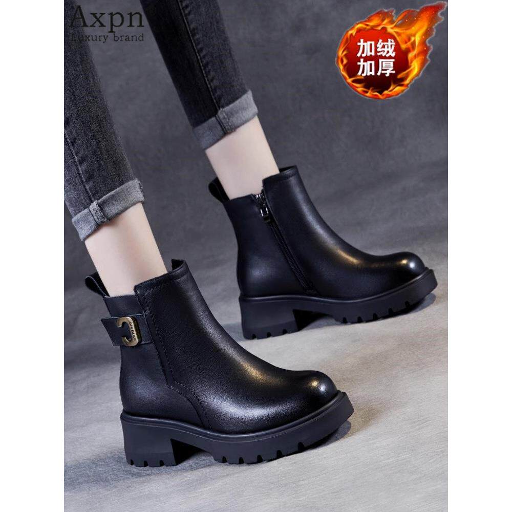 时尚粗跟马丁靴女加绒加厚短靴2025秋冬新款女鞋百搭单靴防滑靴子