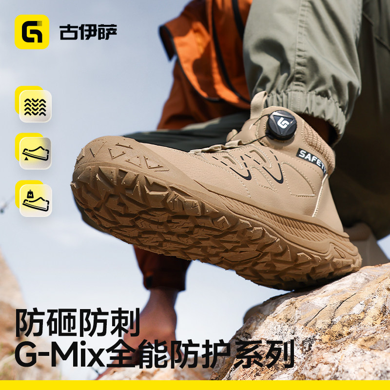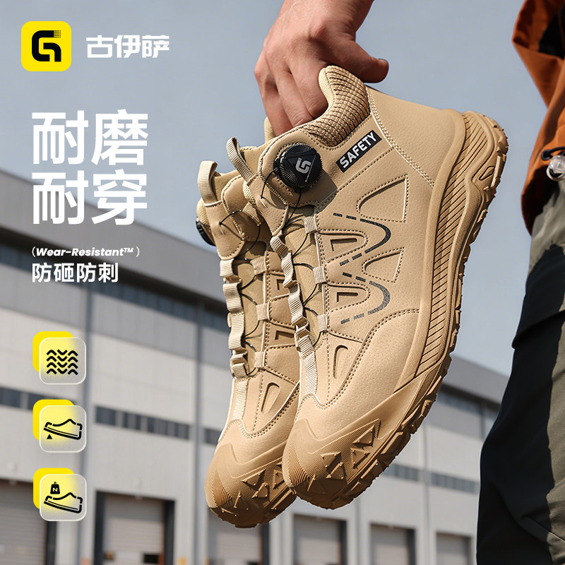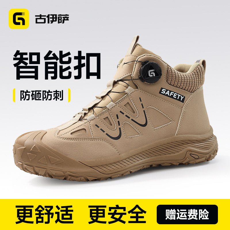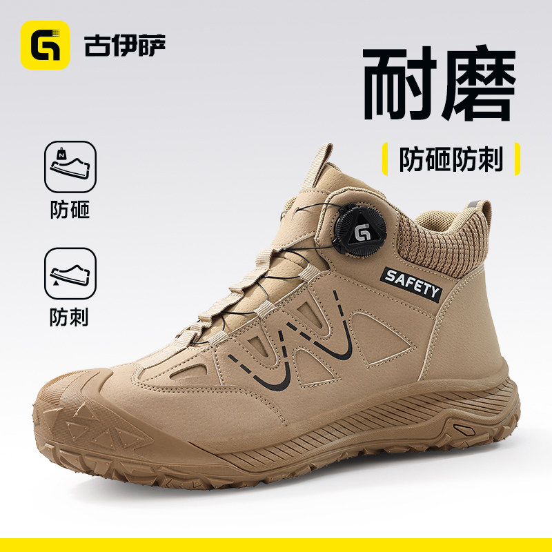 古伊萨高帮劳保鞋四季男款防砸防刺穿耐磨防水安全带钢头工地男鞋