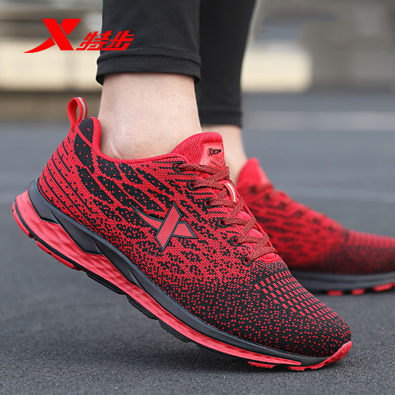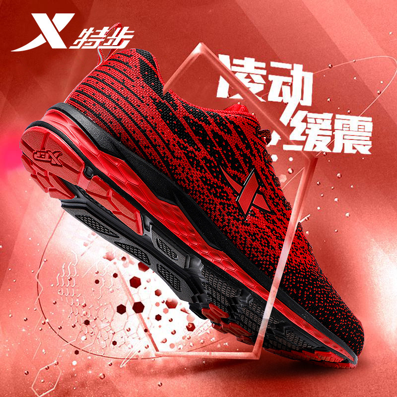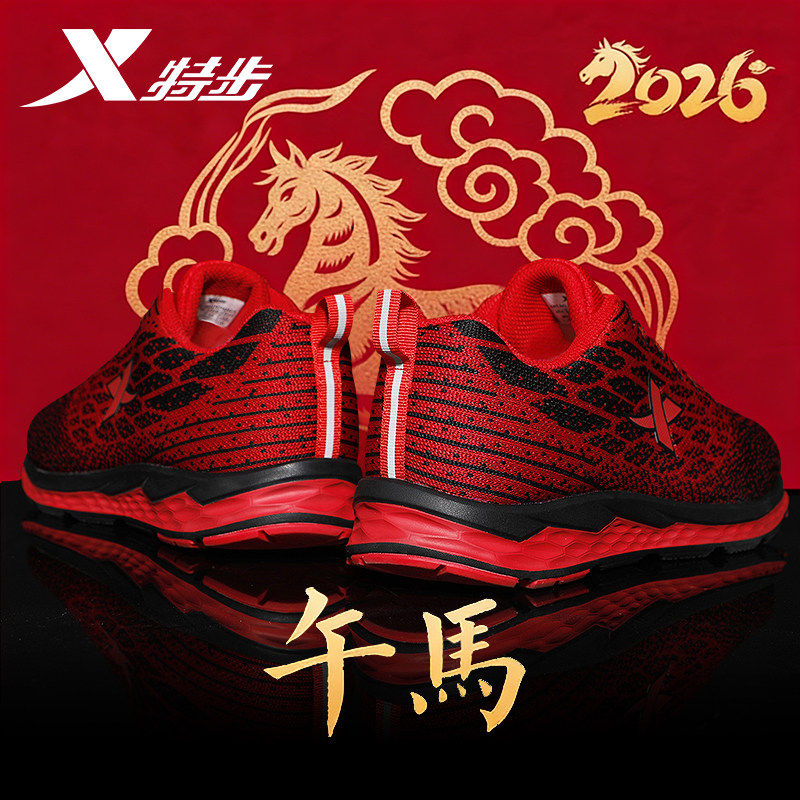 特步2026新款男鞋红色运动鞋男春秋官方旗舰店正品飞织减震跑步鞋