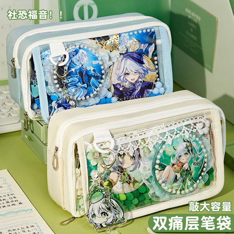 金色童话『绘逸』透明笔袋可放吧唧隐藏双层痛包笔袋大容量高颜值ins风初中女生文具盒可放谷子痛包送扎板