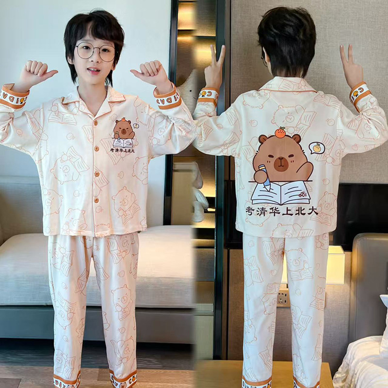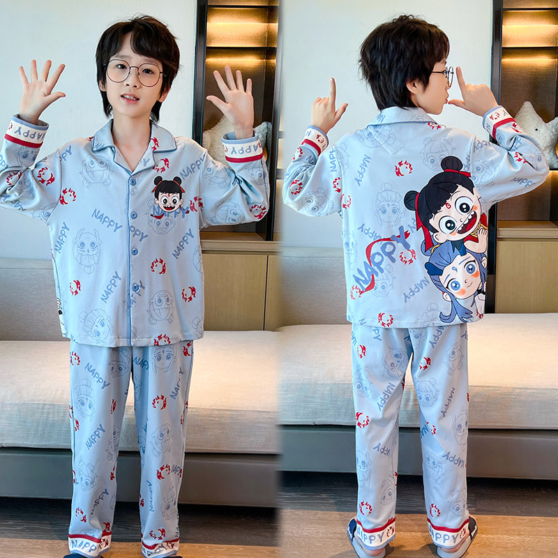 儿童睡衣男童蛋仔春秋季2026新款纯棉长袖小男孩青少年家居服套装
