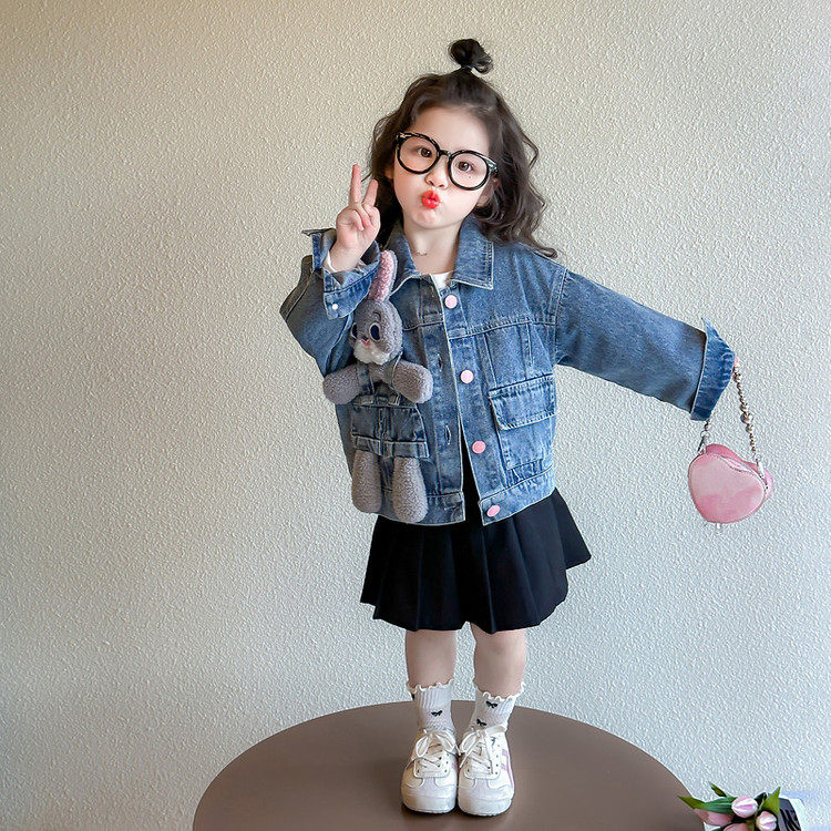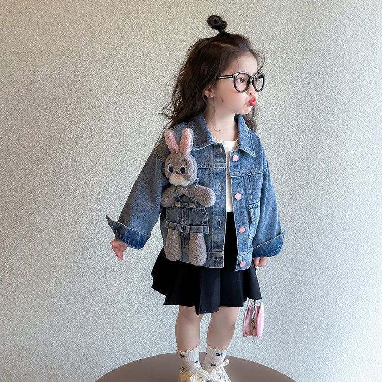女童兔子警官牛仔衣巨好看外套春装2026新款宝宝洋气时髦开衫上衣