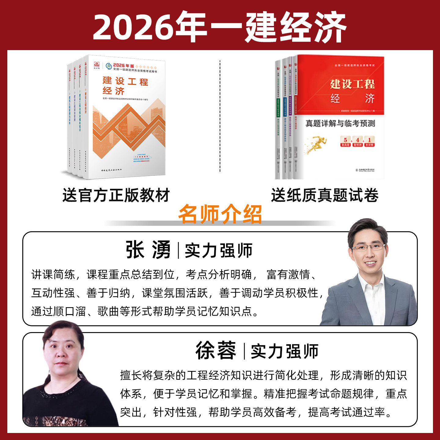 2026年徐蓉一建经济网课视频张湧一级建造师建设工程经济董航蔺飞飞官方教材精讲课程课件电子版讲义历年真题习题考试题库学习张勇