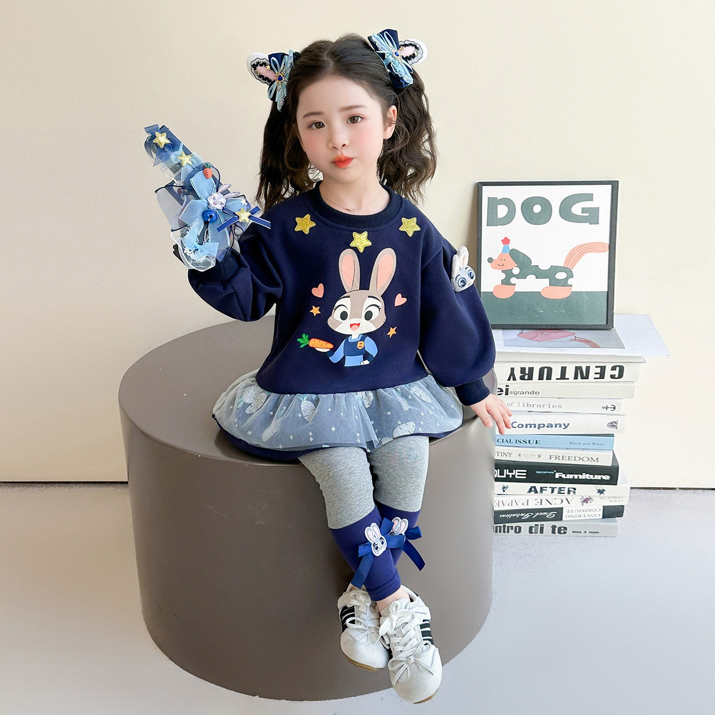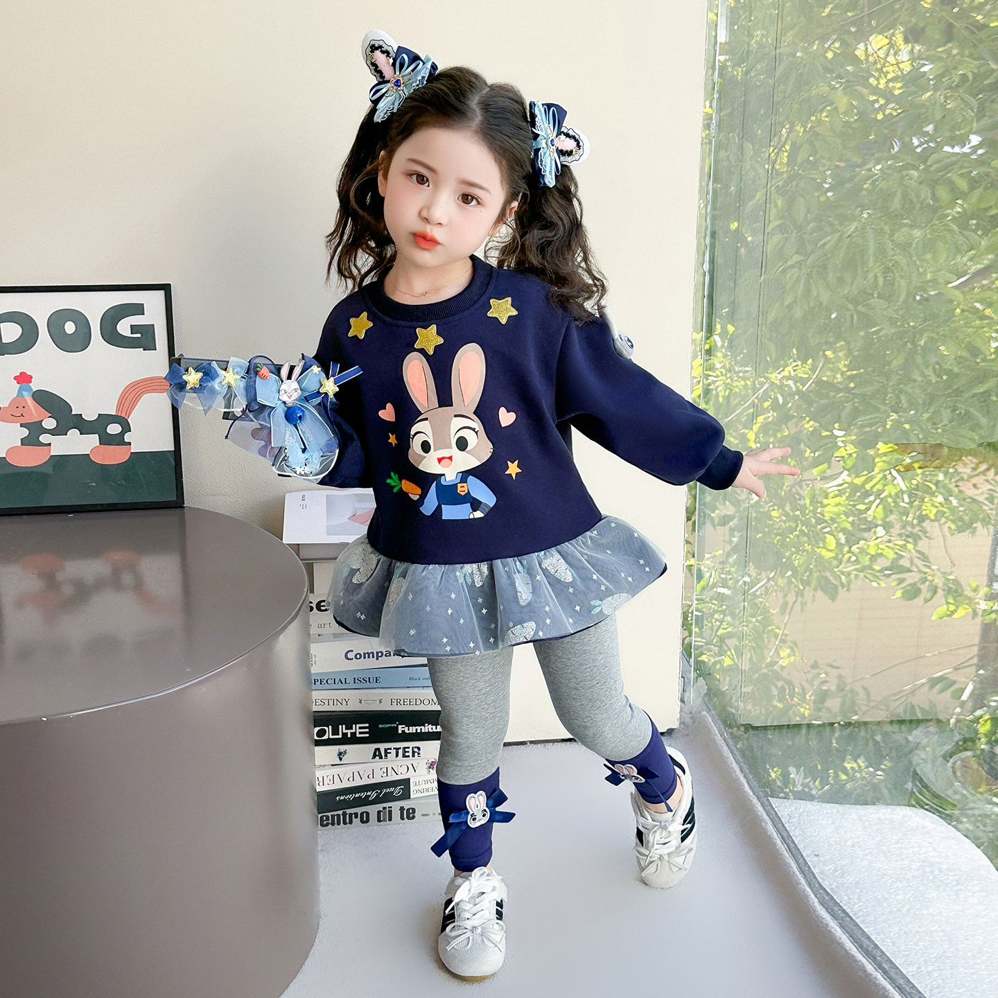 女童春秋款运动套装2026新款洋气时髦儿童女宝宝春季春装蓝兔卫衣