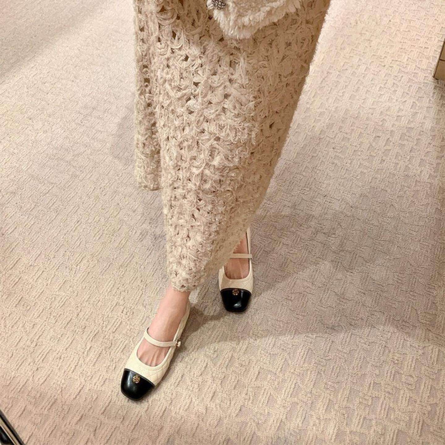 真皮版~小香风内增高玛丽珍单鞋女春款小众设计感拼色百搭奶奶鞋
