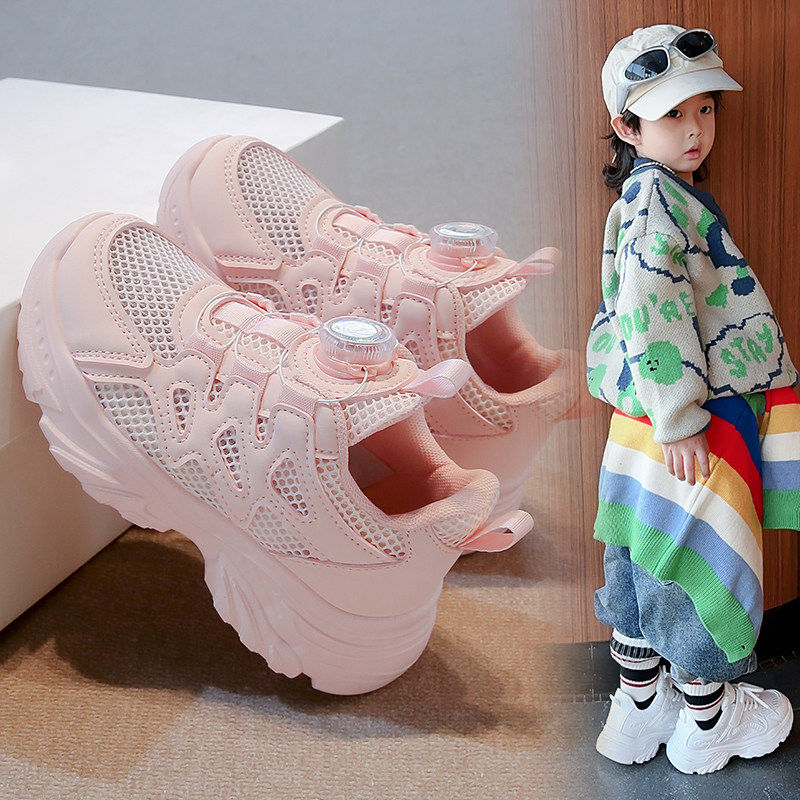 女童单网老爹鞋夏季新款儿童运动鞋旋转纽扣镂空透气男童小白鞋潮