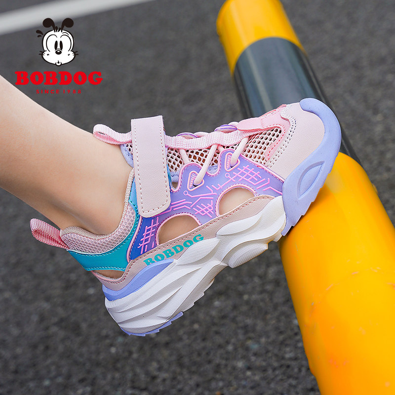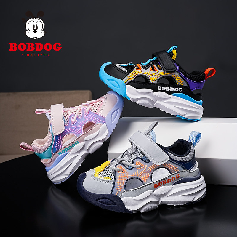 巴布豆男童鞋子夏款2025新款儿童运动凉鞋中大童透气镂空网鞋男孩