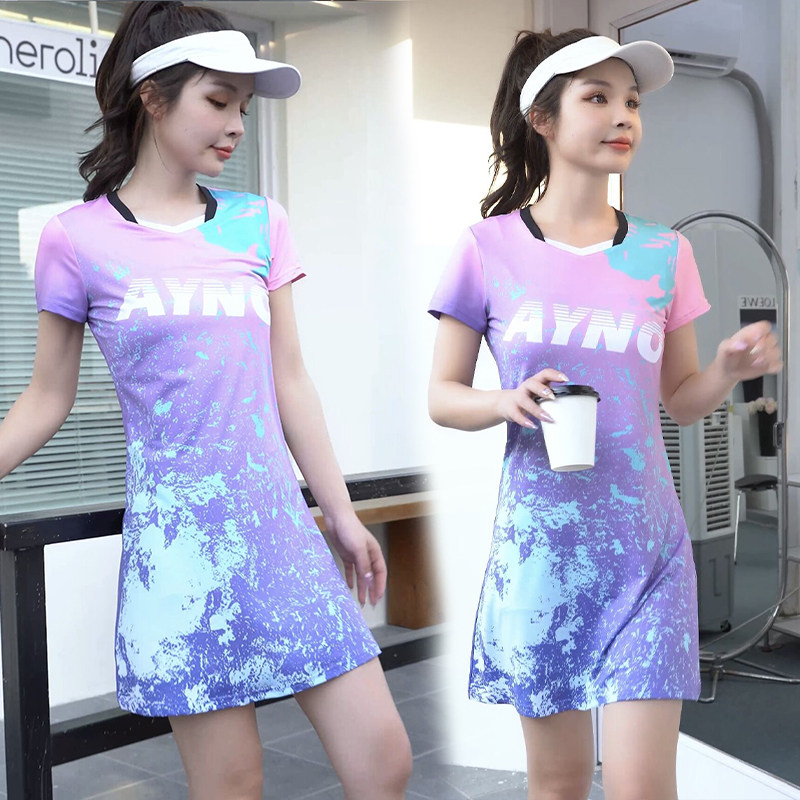 羽毛球套装女运动男新款速干网球韩国衣大码运动团购短袖连衣裙服