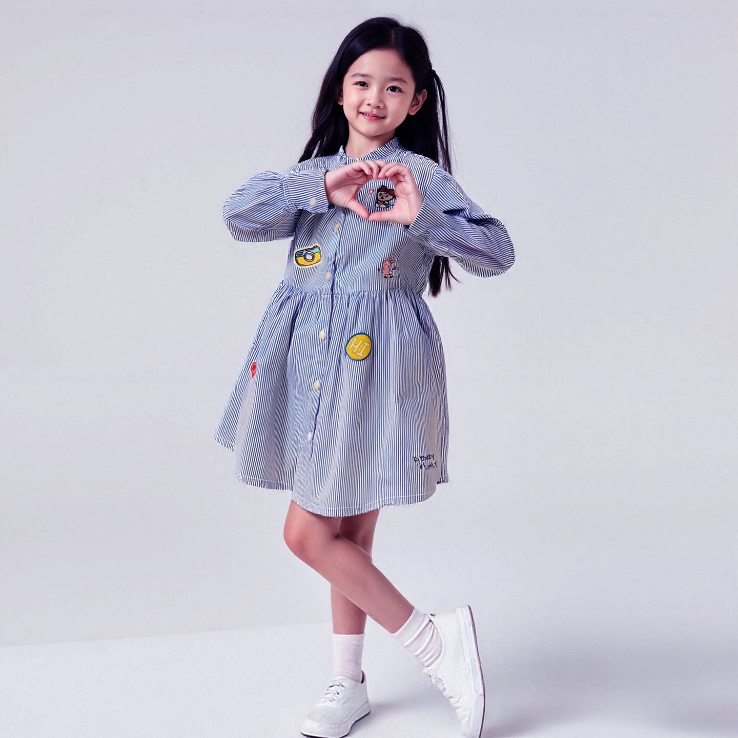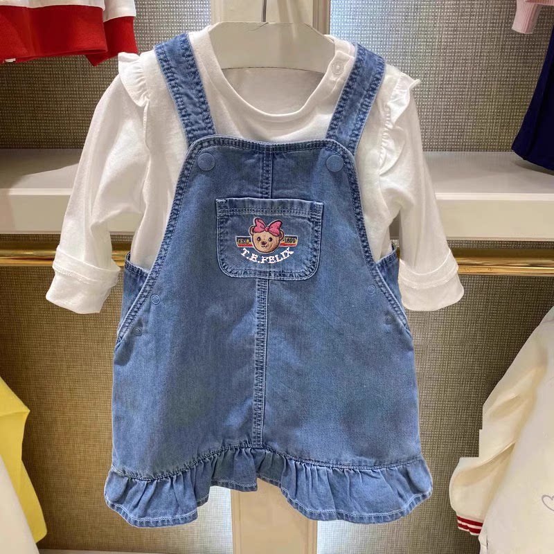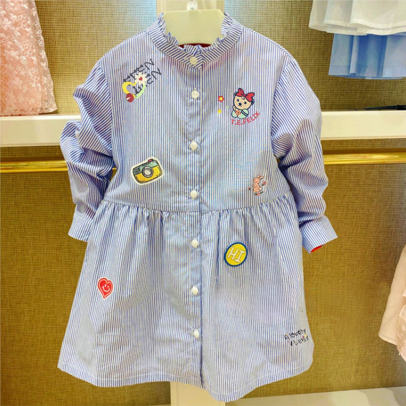 清仓春秋围尼小熊女童长袖连衣裙纯棉休闲衬衣儿童童装 长款