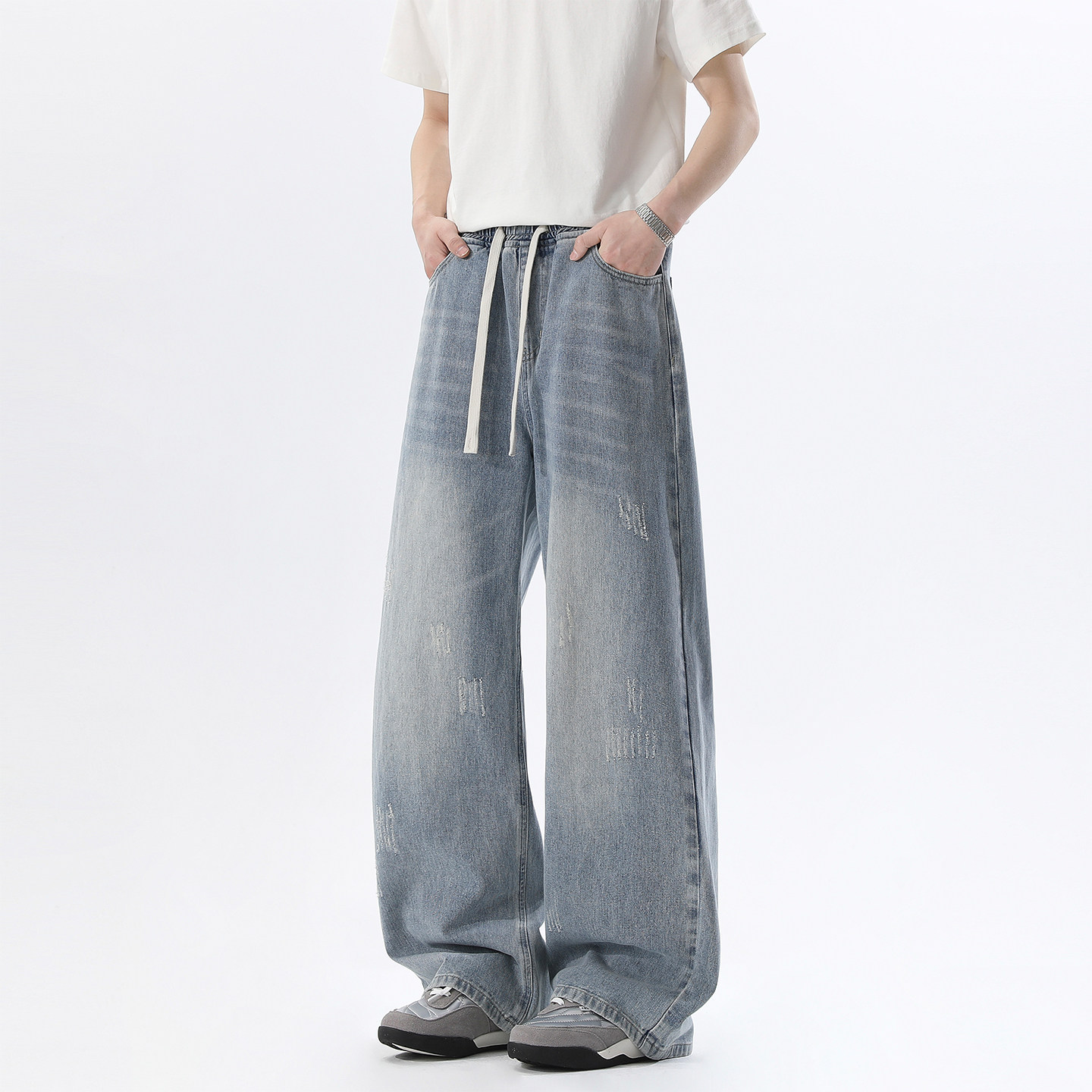 ZMGEEN美式复古牛仔裤男夏季2026新款潮牌宽松直筒薄款浅色长裤子