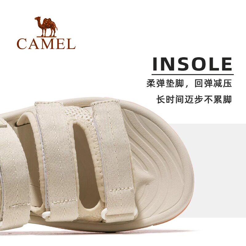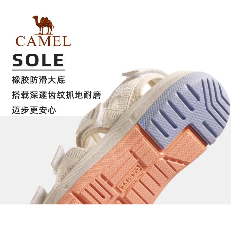 【踏浪】骆驼运动凉鞋女2026夏季女鞋防滑软底沙滩鞋女魔术贴鞋子