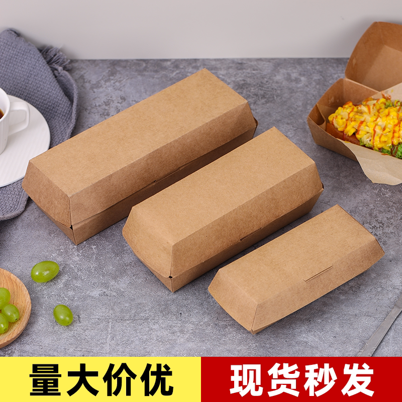 牛皮纸盒热狗盒长方形一次性外卖打包芝士拉丝热狗棒包装盒子定制