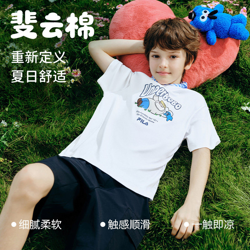 【BOBO联名T】斐乐儿童短袖T恤2026年夏季新款男女童凉感纯棉上衣