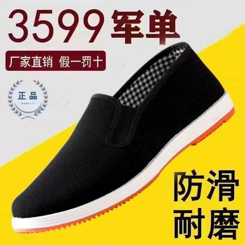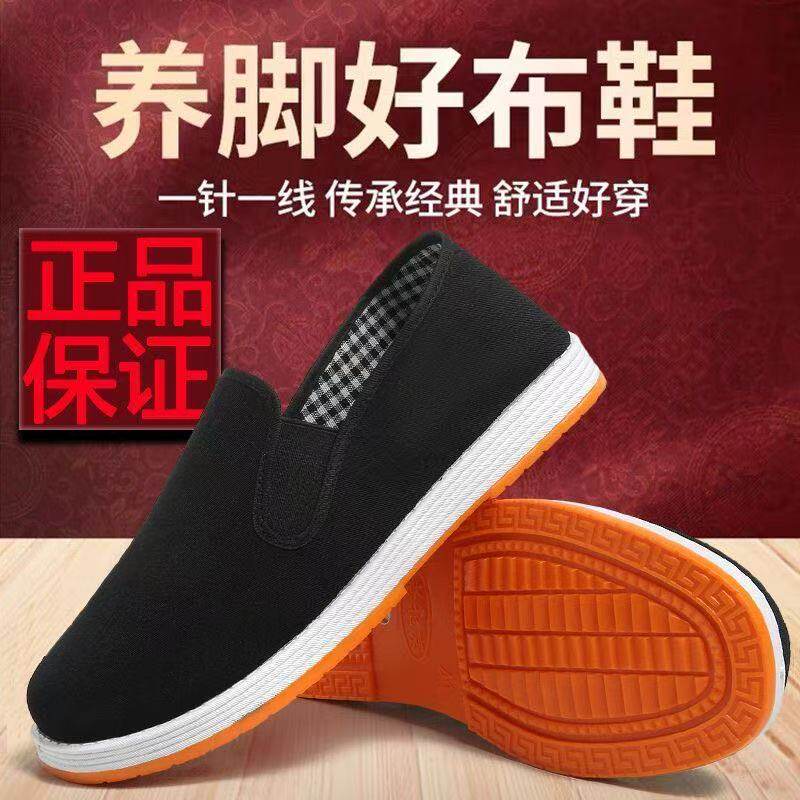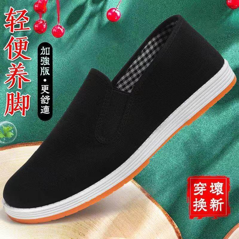 牛筋底老北京布鞋男牛筋软底纯棉防滑耐磨透气黑布鞋女一脚蹬鞋
