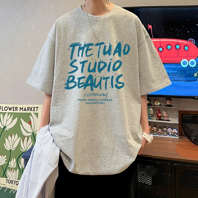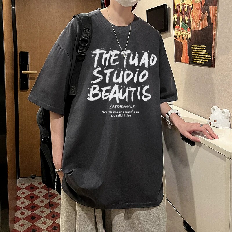美式宽松短袖T恤男女款2026夏季青少年痞帅百搭重磅纯棉休闲上衣