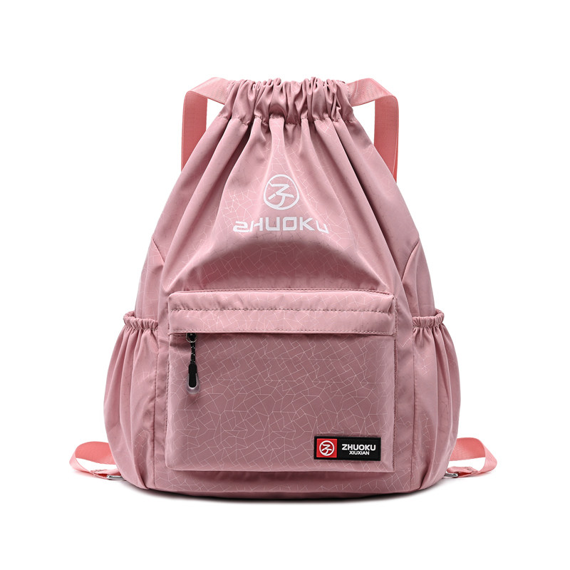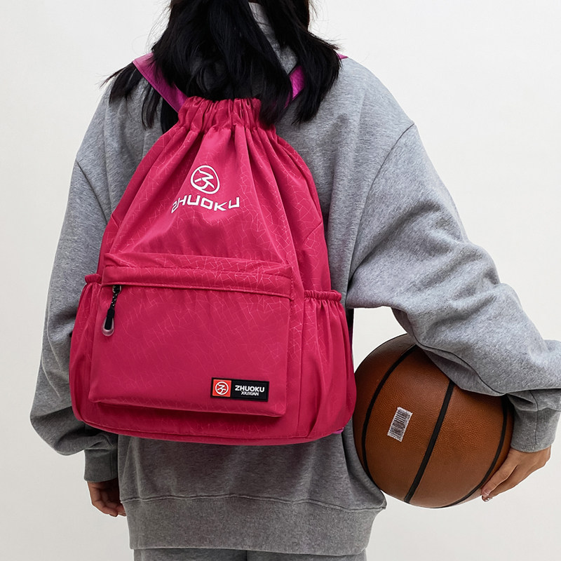 男女新款撞色抽绳束口袋双肩包大容量柔力球拍包轻便折叠学生书包