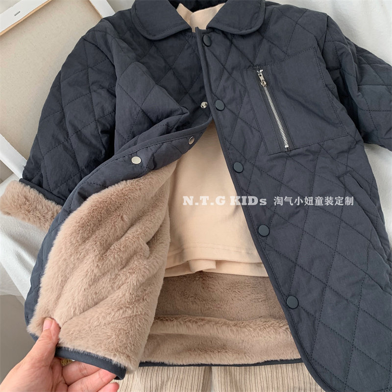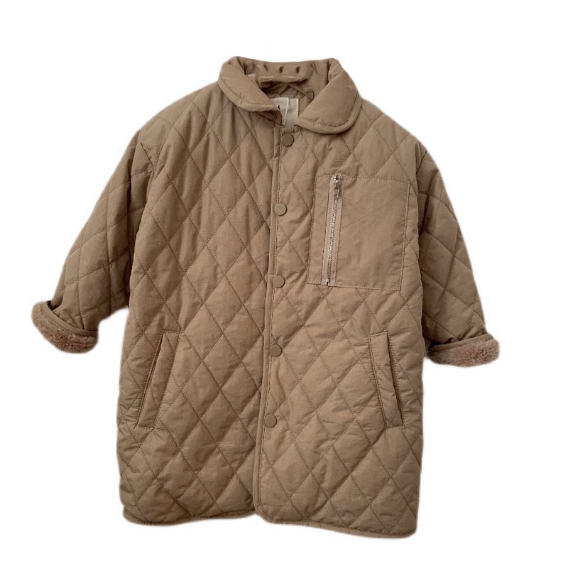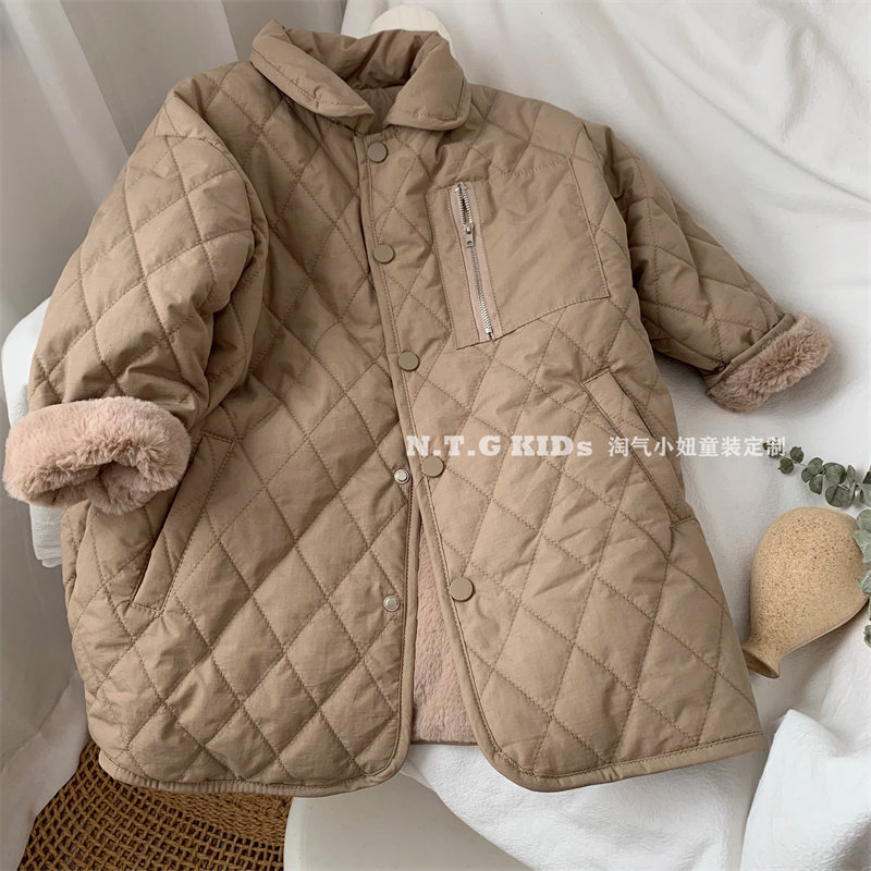 包邮自留 品质 韩版冬男女童加绒加厚中长款夹棉外套棉服洋气上衣