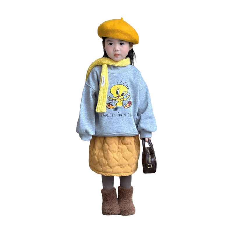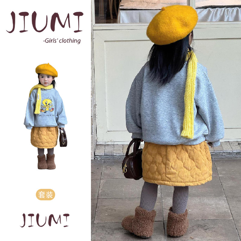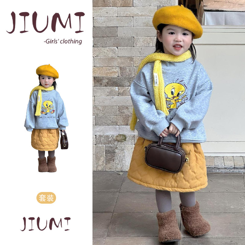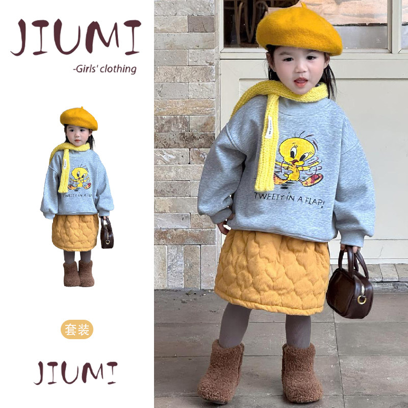 女童春秋加绒奥绒休闲可爱套装宝宝洋气休闲高领卫衣半身裙两件套
