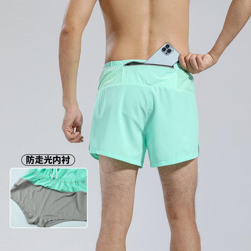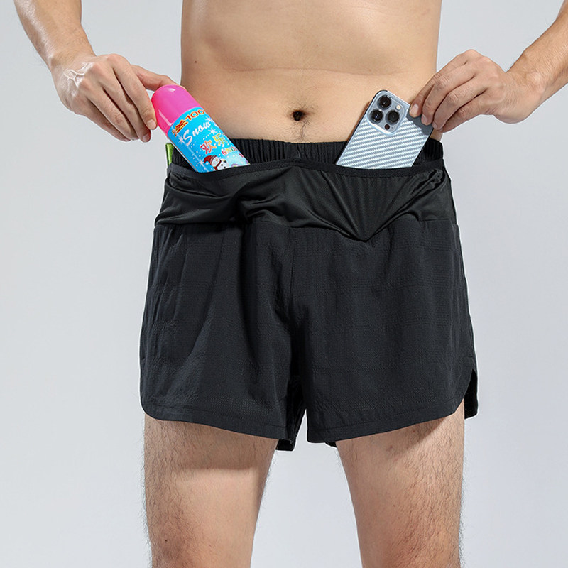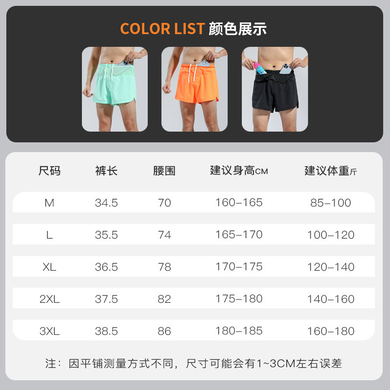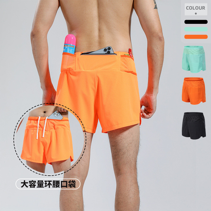 夏季薄款跑步短裤专业马拉松竞速轻薄速干双层三分裤多口袋腰包裤