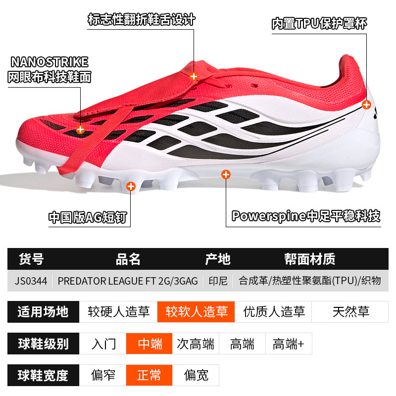 酷锐足球阿迪达斯猎鹰26中端中国版短钉AG人草翻鞋舌足球鞋JS0344