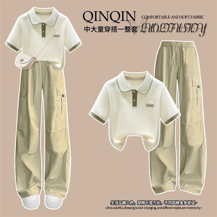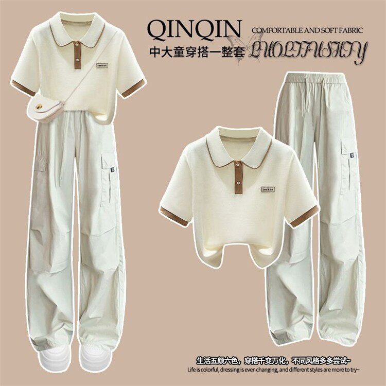 女童夏套装2026新款今年流行爆款短袖中大童polo衫工装裤子两件套