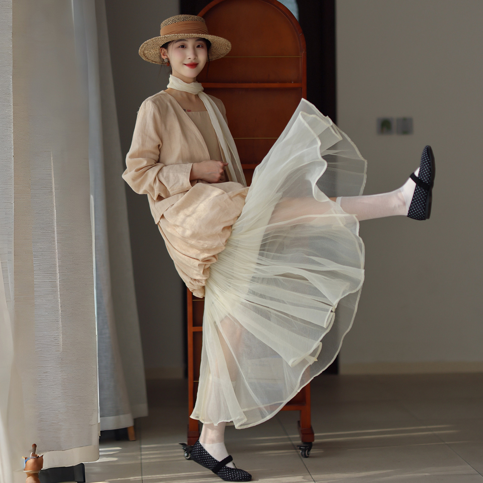 墨黛原品春夏新品法式显瘦百搭吊带时尚花苞短裙上衣围巾三件套