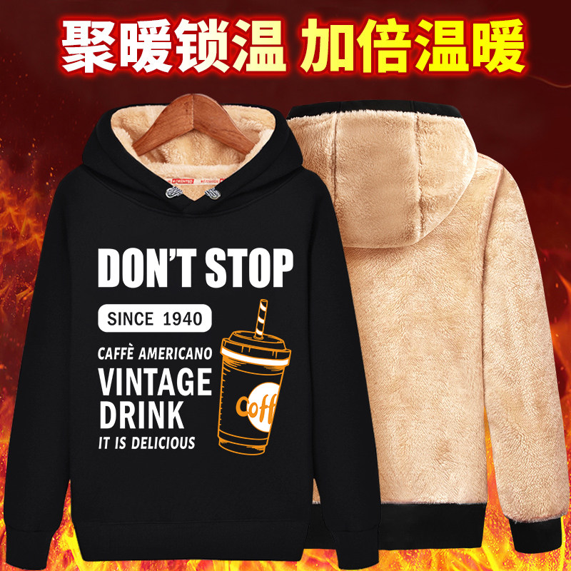 加绒卫衣男冬季连帽加厚羊羔绒上衣青少年初中学生秋冬款保暖外套