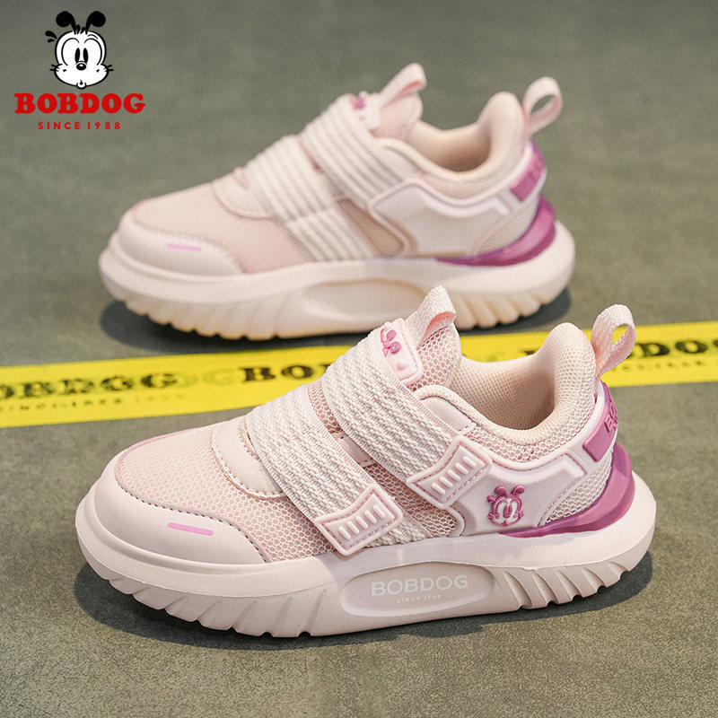 巴布豆童鞋女童鞋子2026新款春季皮面防水儿童运动鞋小女孩跑步鞋