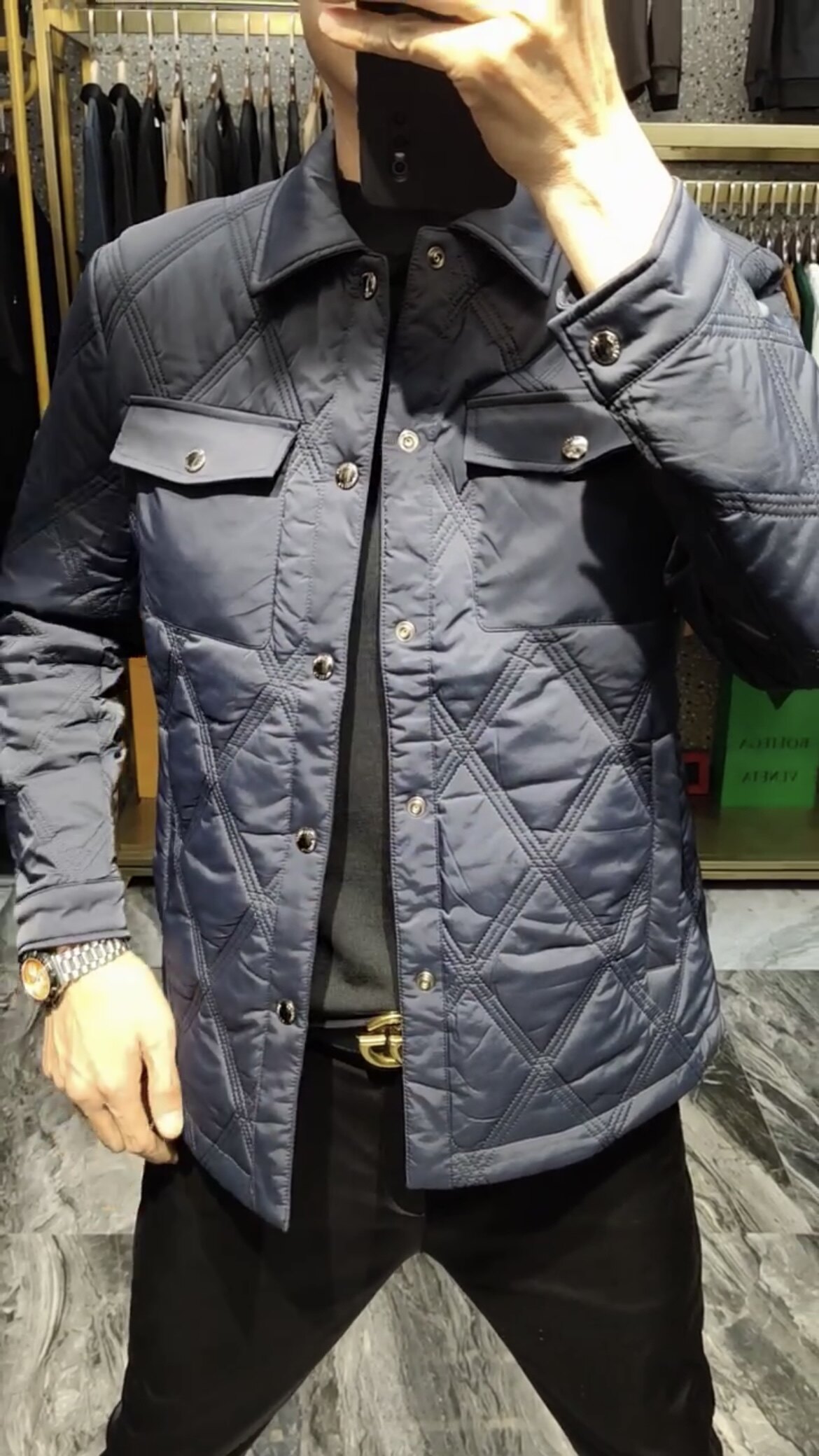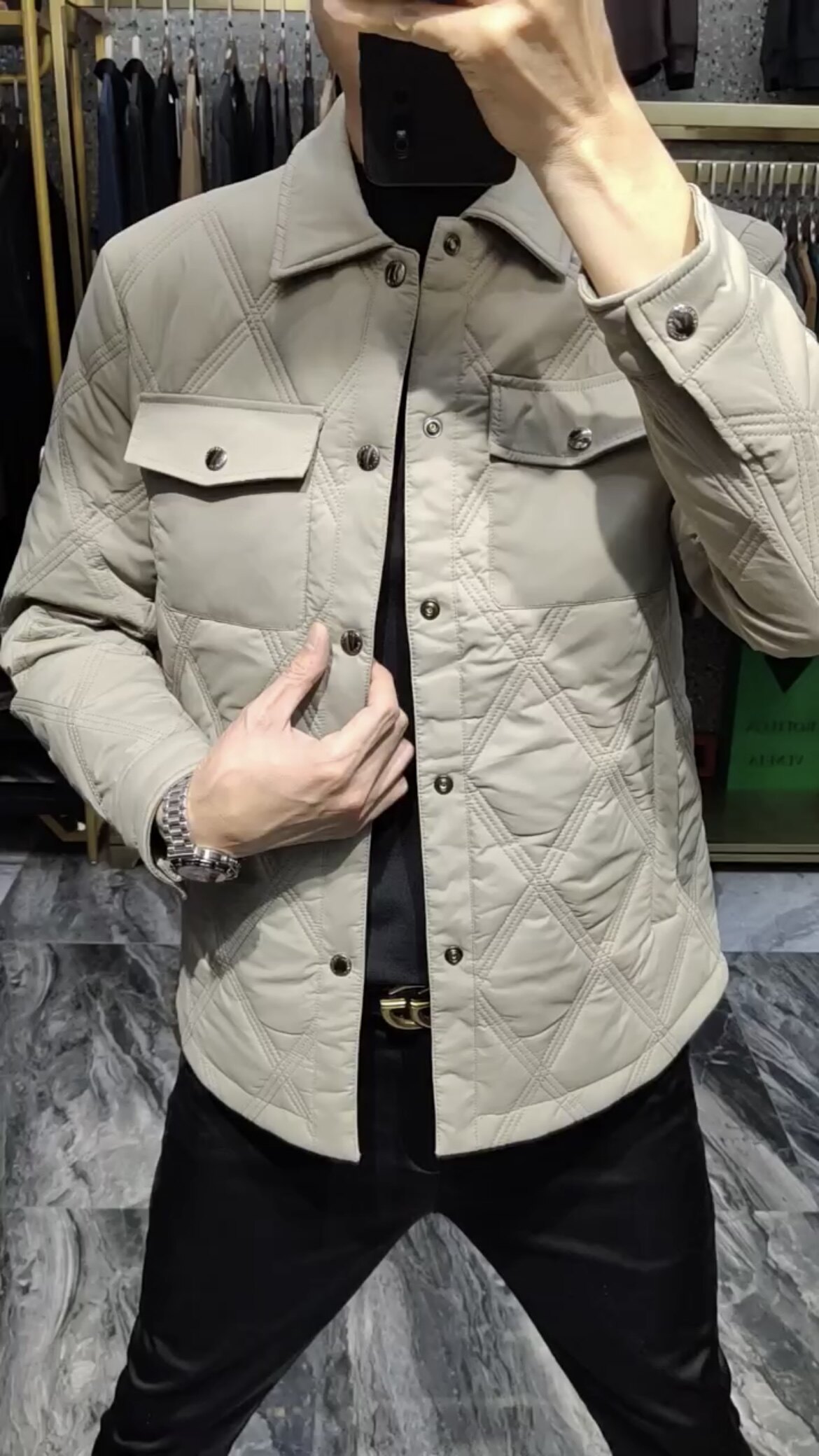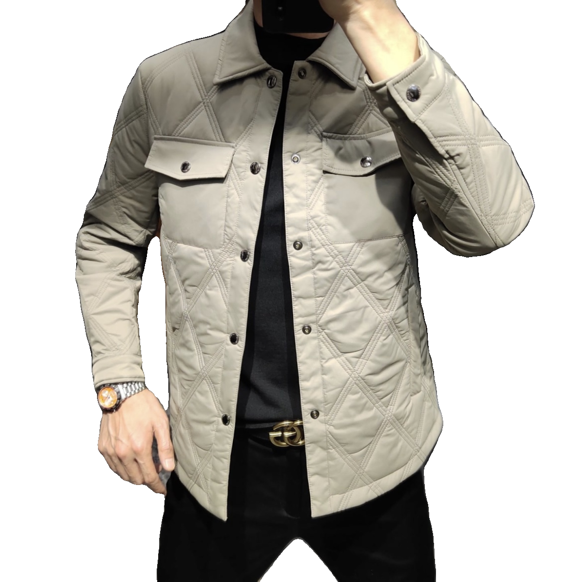 春季男款翻领衬衫轻薄棉服男士休闲短款夹克春装上衣外套棉衣男装