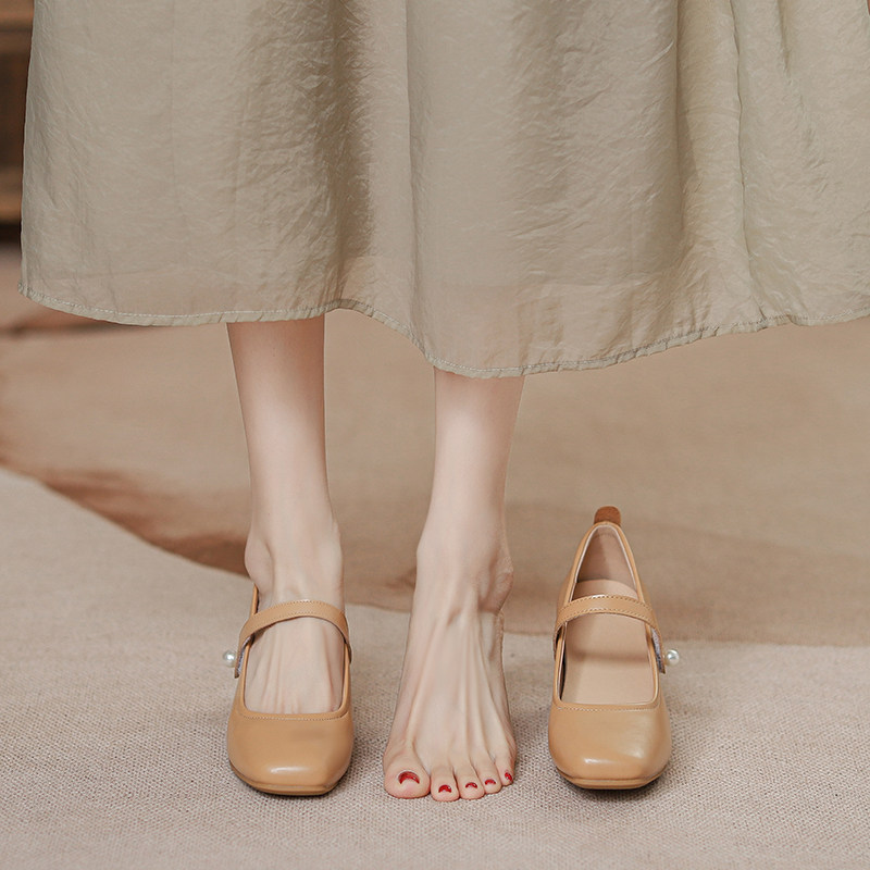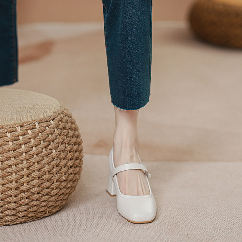 小个子内增高8cm玛丽珍浅口法式单鞋女配裙子百搭粗跟不累脚小码