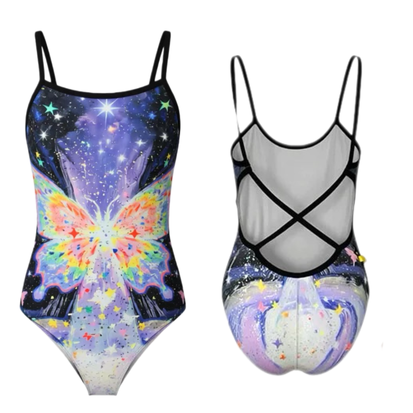 豆豆丁泳衣女士泡温泉高级感专业单层竞速训练连体七彩蝴蝶无胸垫