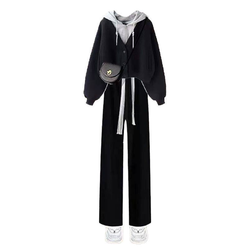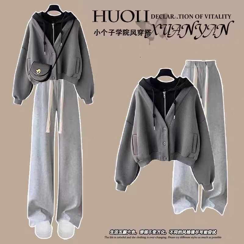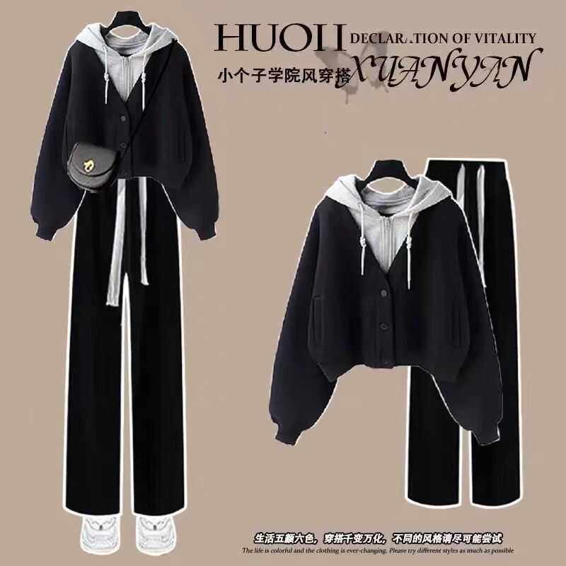 女童初秋套装中式外套女款春秋中大童网红炸街宽松卫衣直筒阔腿裤