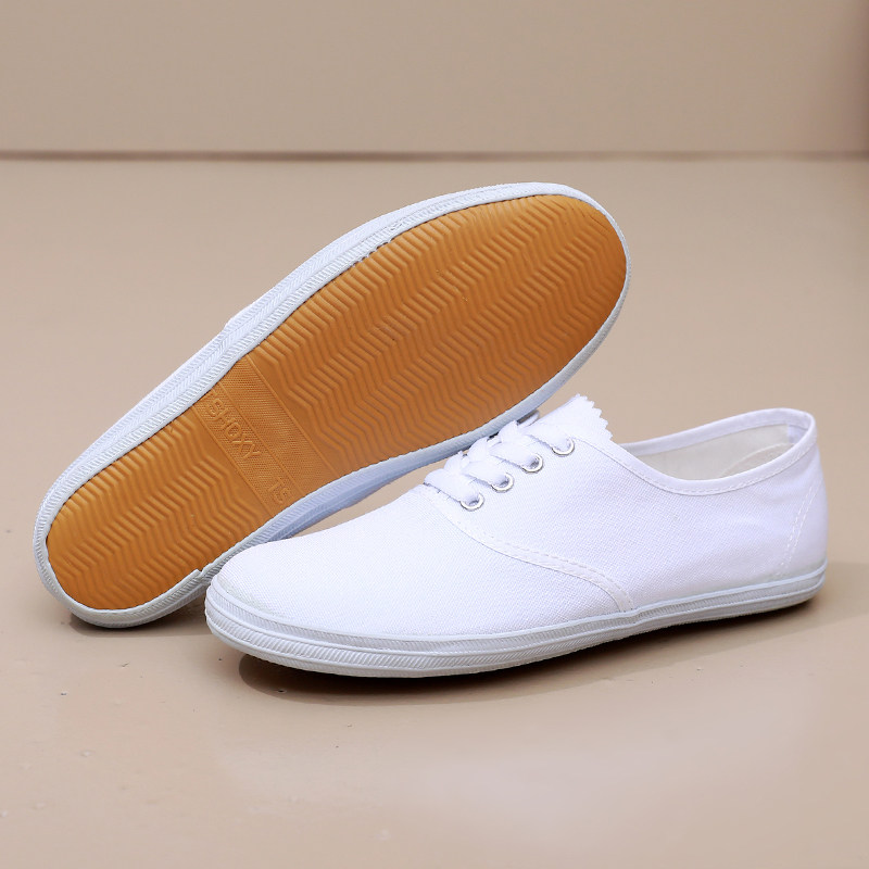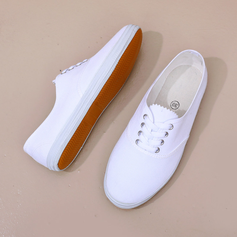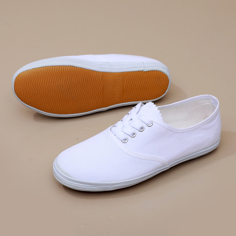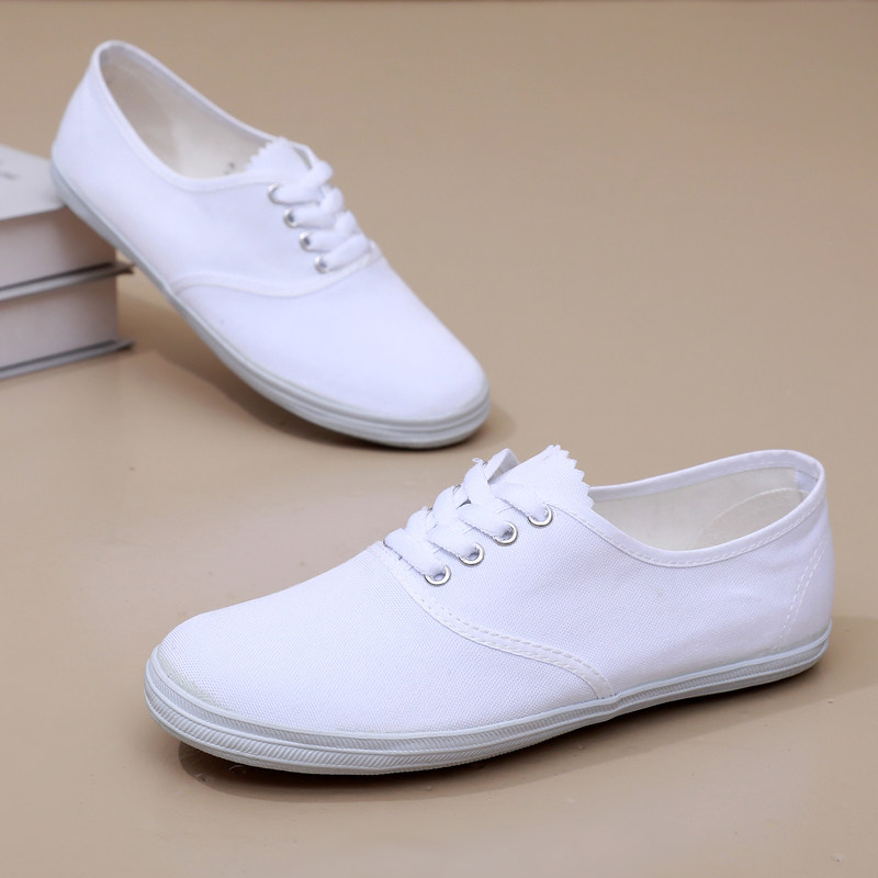 白球鞋男女款帆布鞋小白鞋体操表演舞蹈鞋鞋晨练护士鞋白色帆布鞋