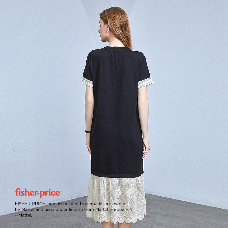 费雪孕妇装夏季撞色短袖高级感拼接天丝蕾丝刺绣连衣裙夏装女套装